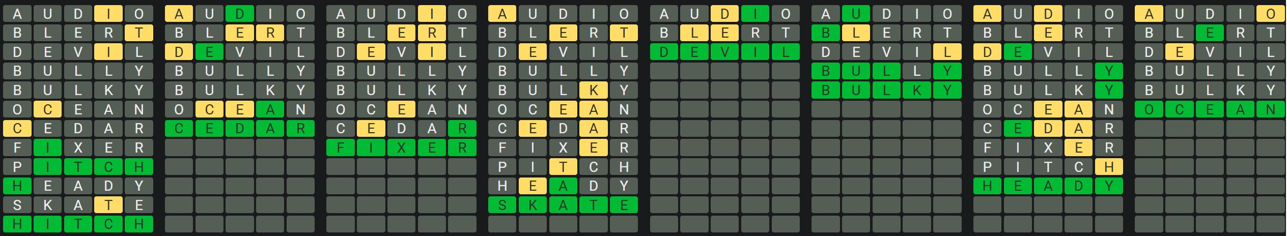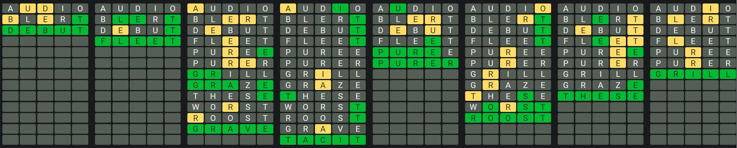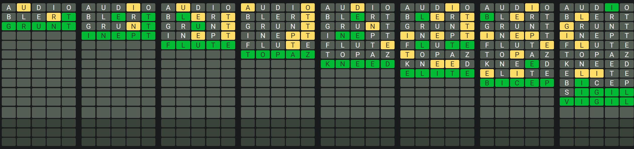 The Sequence Mode is similar to the original Octordle game with the following changes.