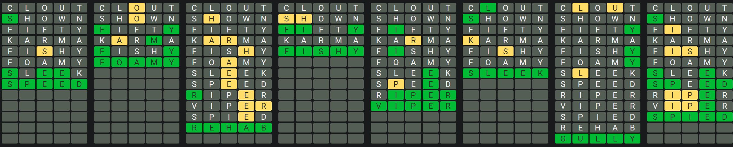 Hint 5: There is a repeated letter in words 4, 5 and 7.