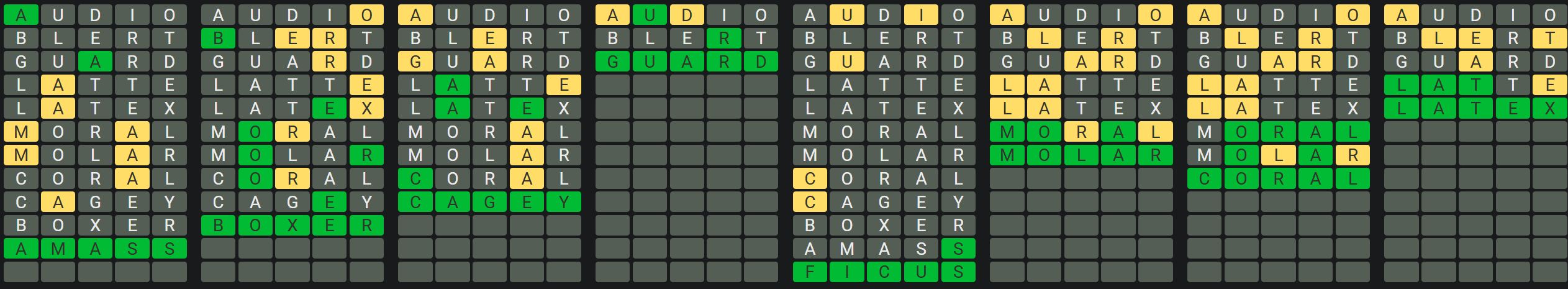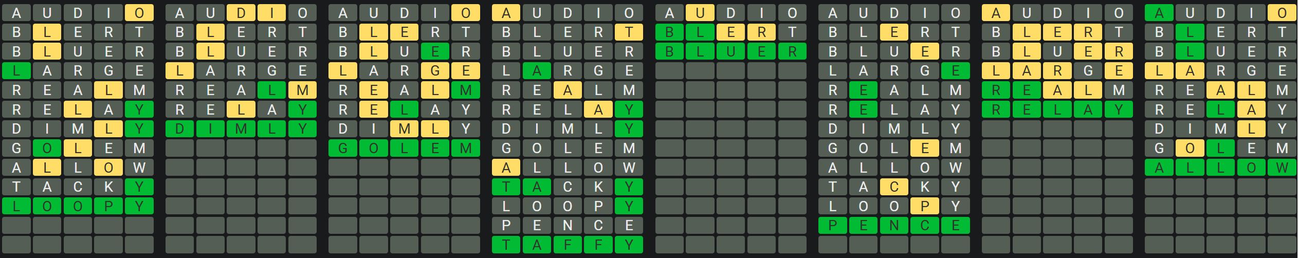 The Sequence Mode is similar to the original Octordle game with the following changes.