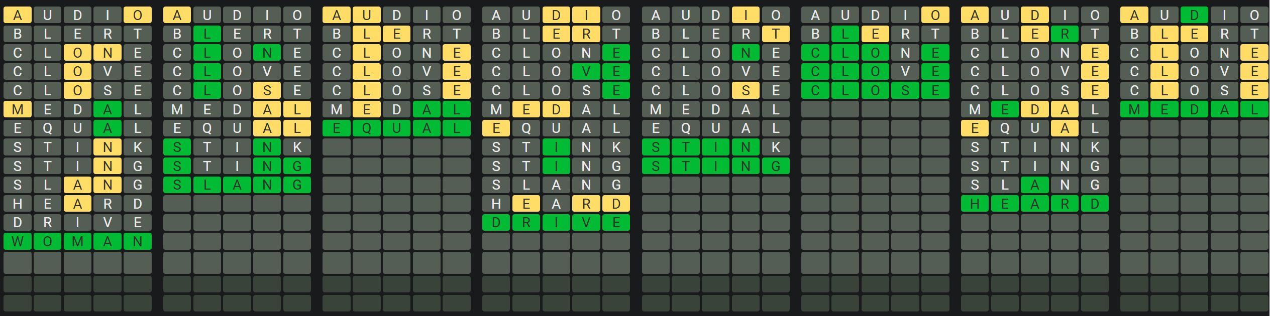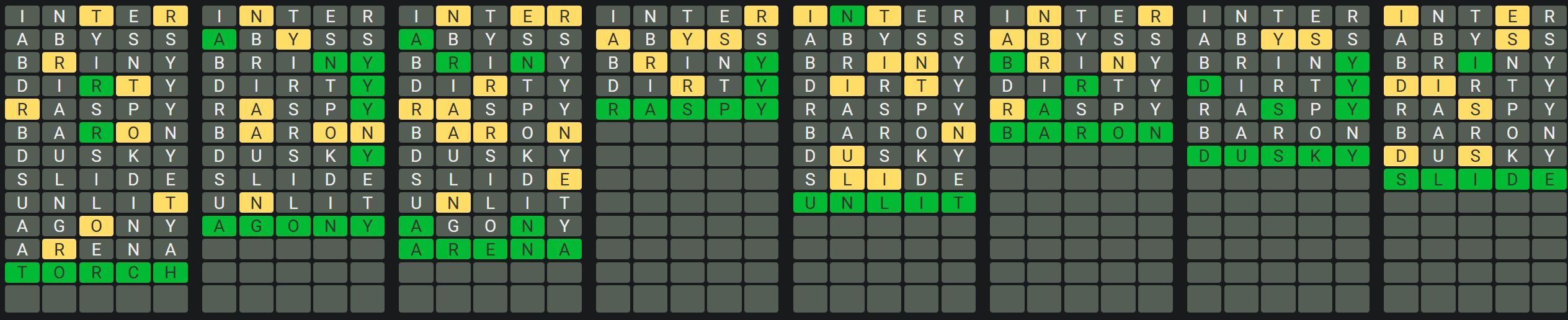 - Only one unsolved word is visible at a time. Once you solve a word, the next board is unlocked.