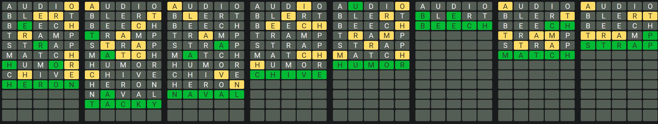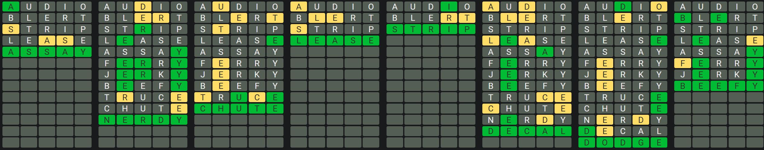 The Sequence Mode is similar to the original Octordle game with the following changes.