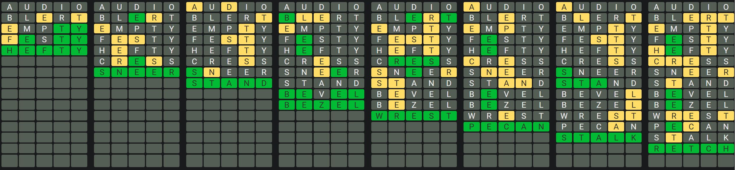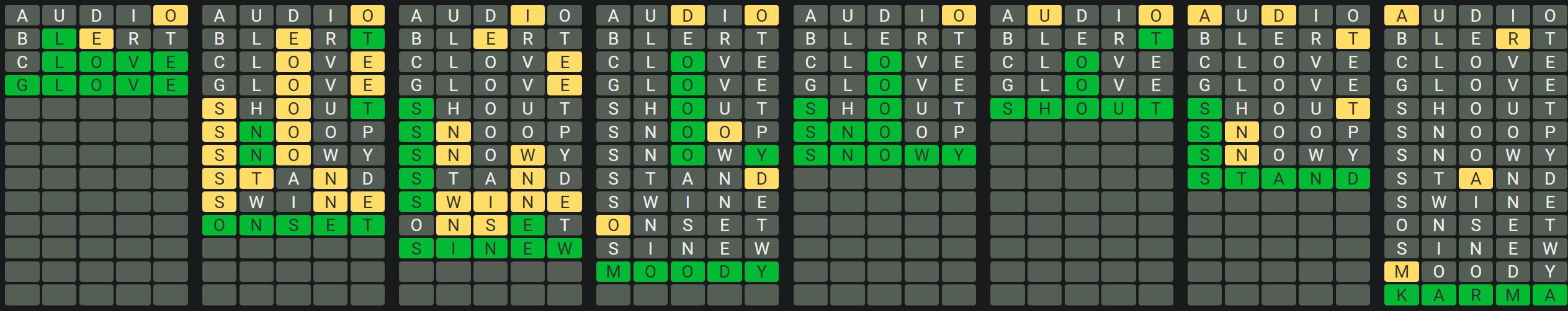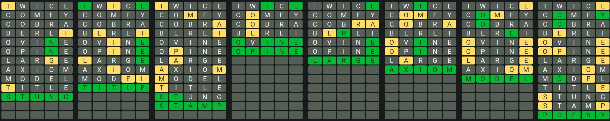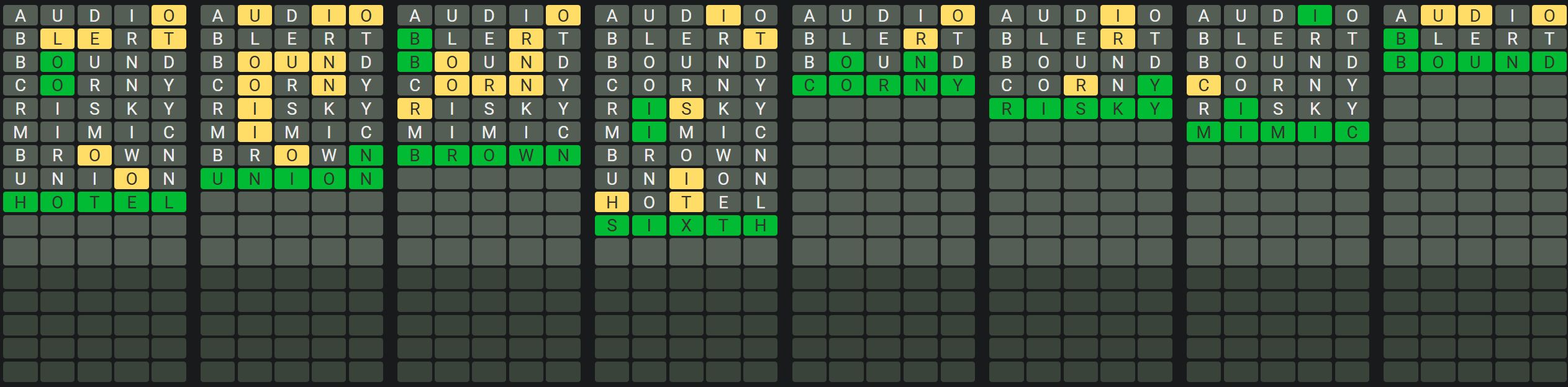 The Sequence Mode is similar to the original Octordle game with the following changes.