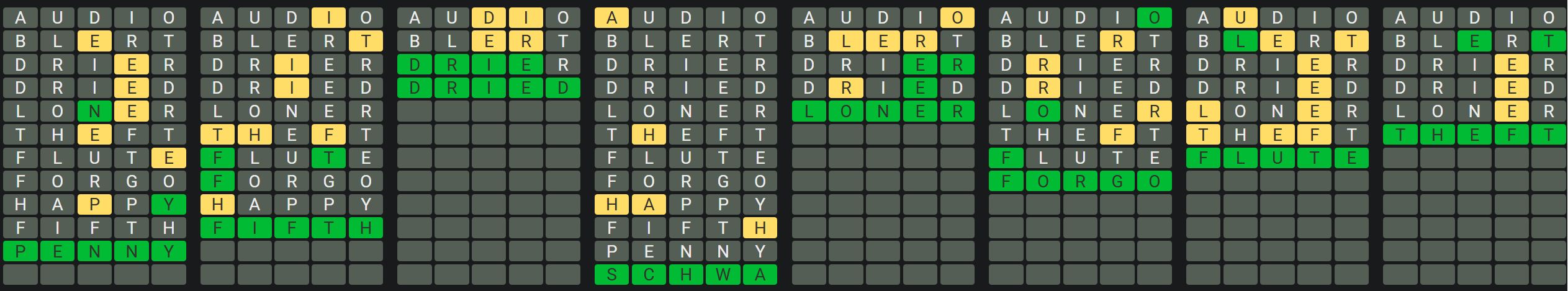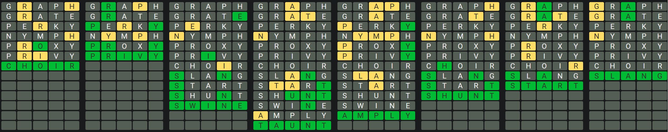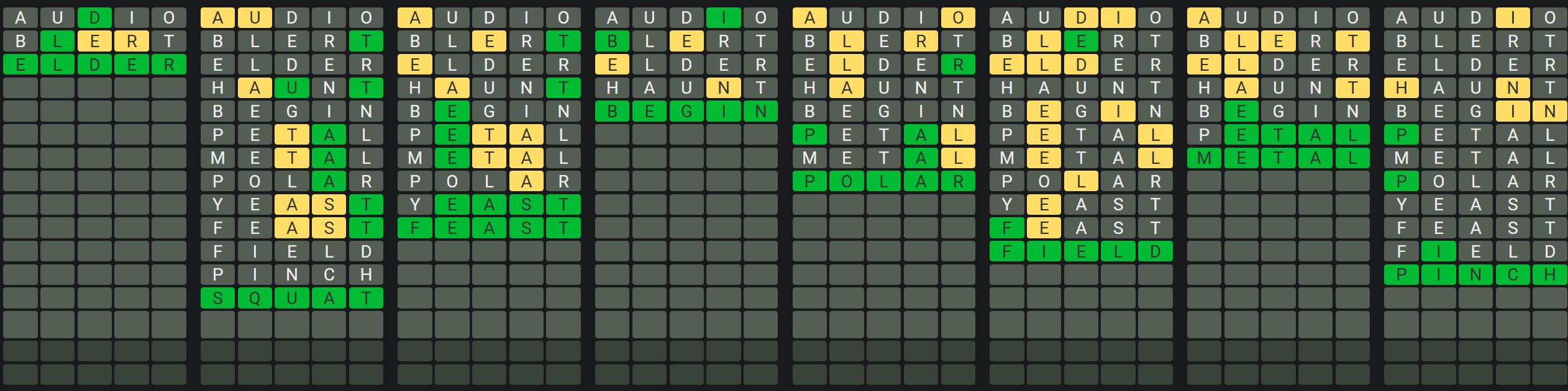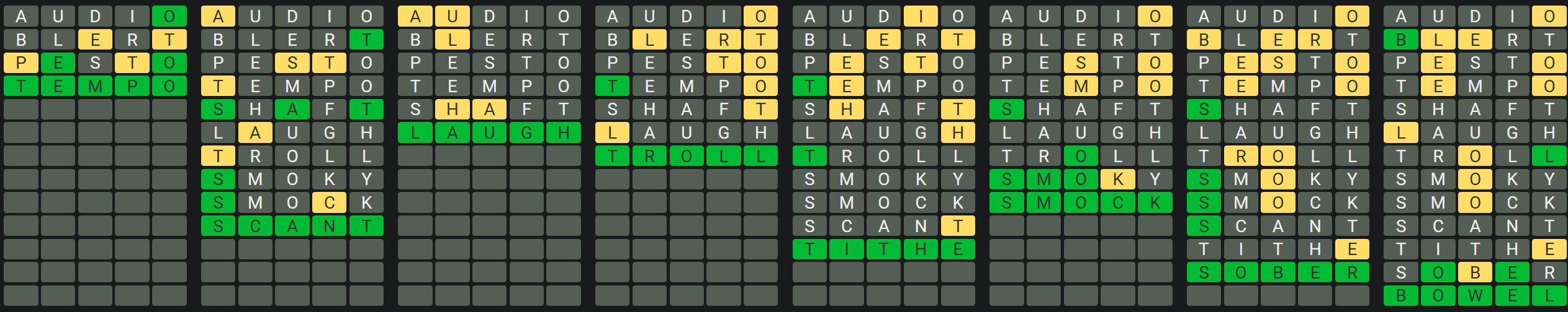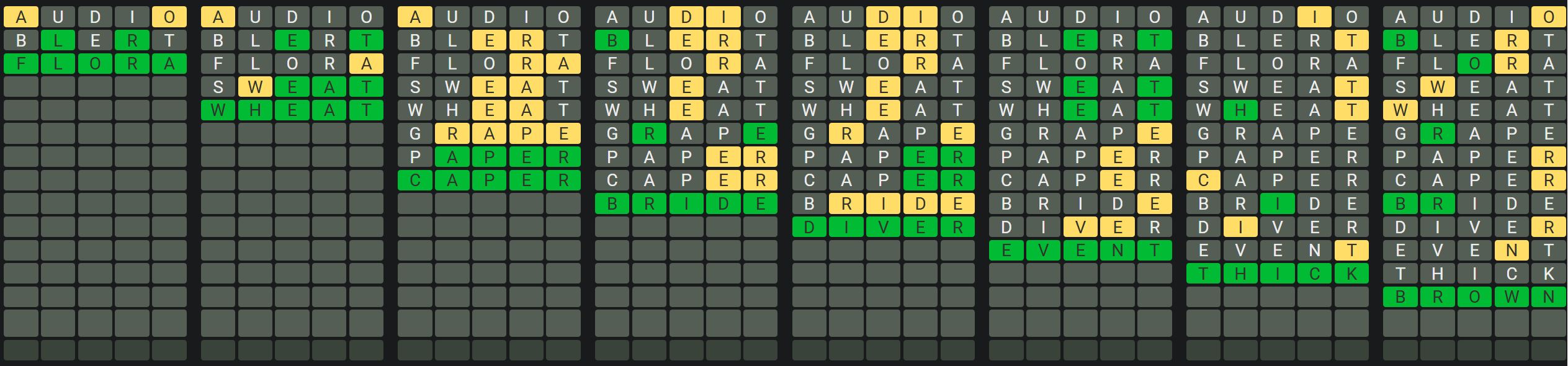 The Sequence Mode is similar to the original Octordle game with the following changes.