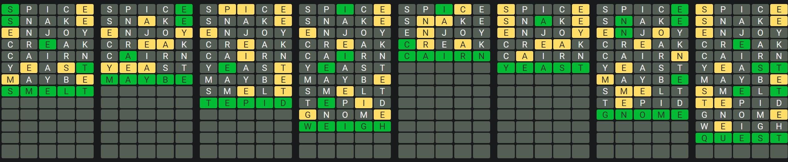 The Sequence Mode is similar to the original Octordle game with the following changes.