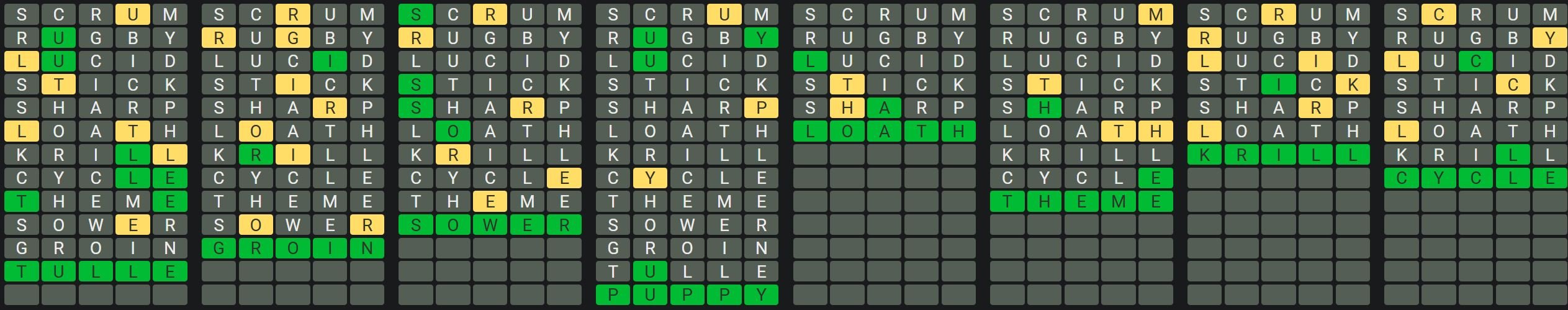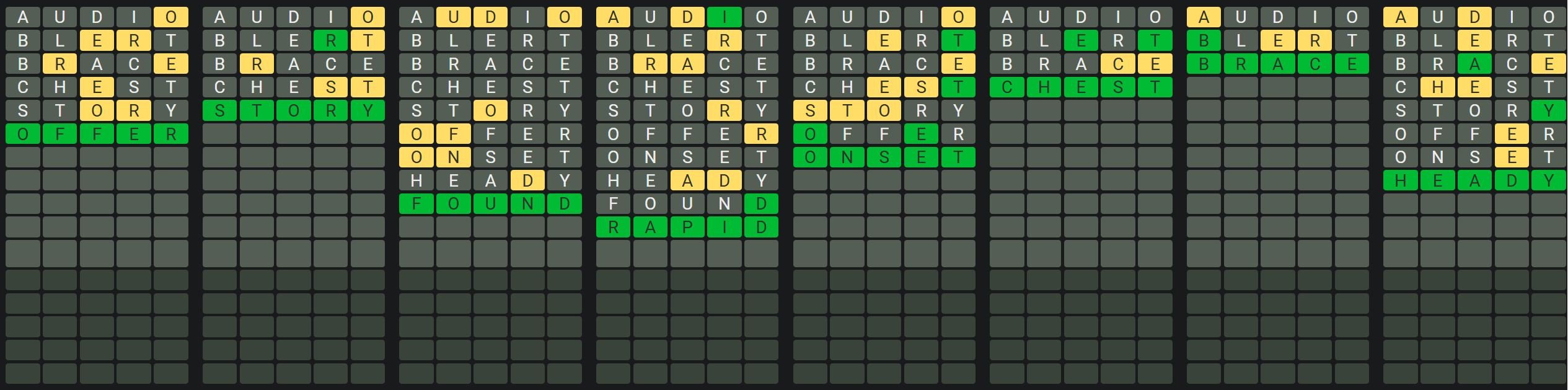 The Sequence Mode is similar to the original Octordle game with the following changes.