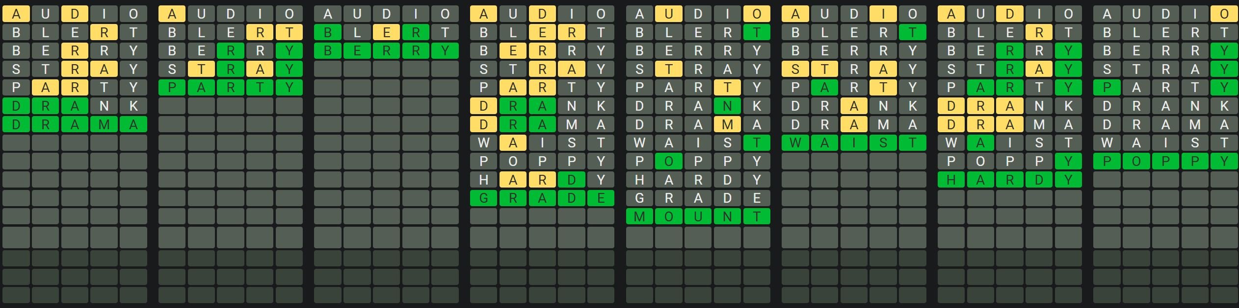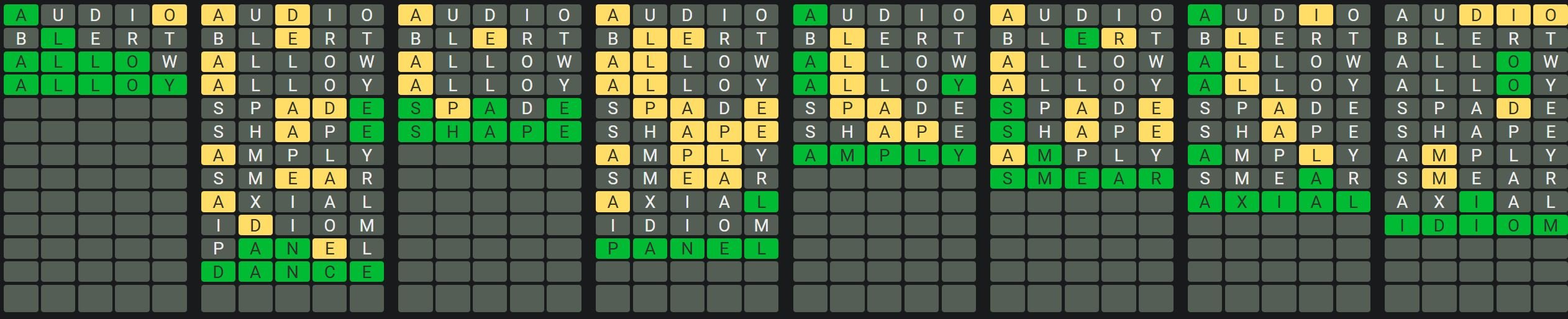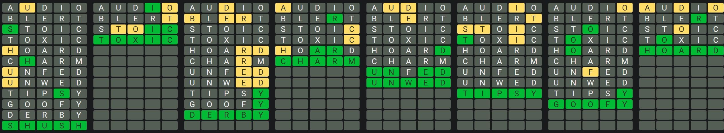 The Sequence Mode is similar to the original Octordle game with the following changes.