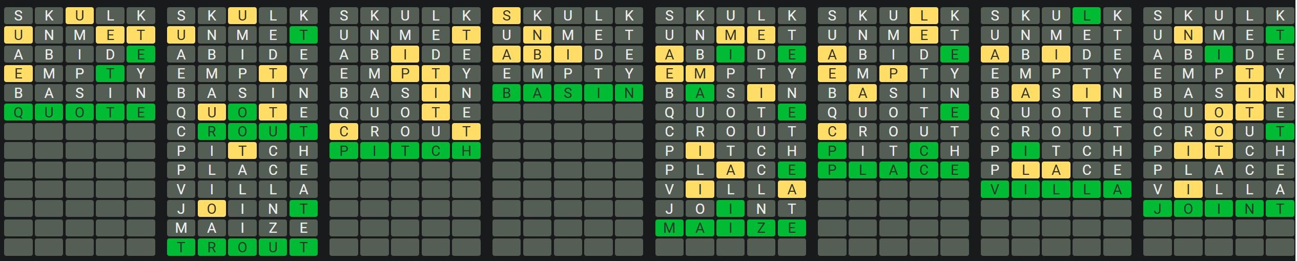 - Only one unsolved word is visible at a time. Once you solve a word, the next board is unlocked.