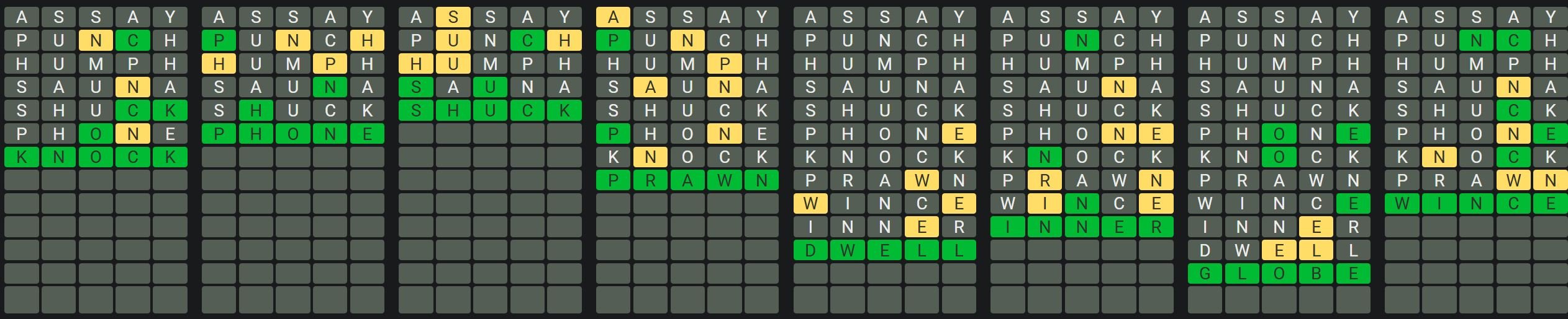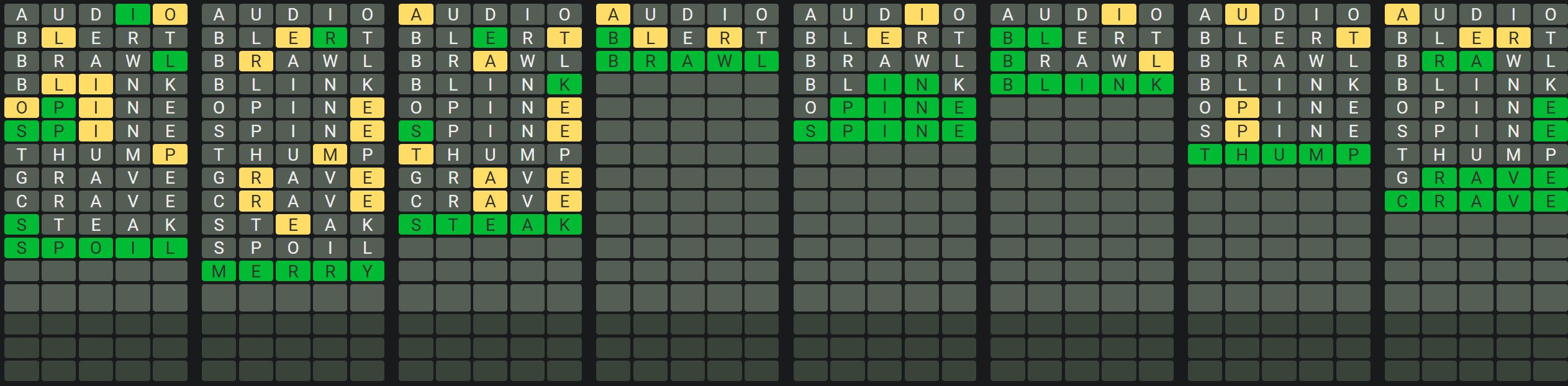 The Sequence Mode is similar to the original Octordle game with the following changes.