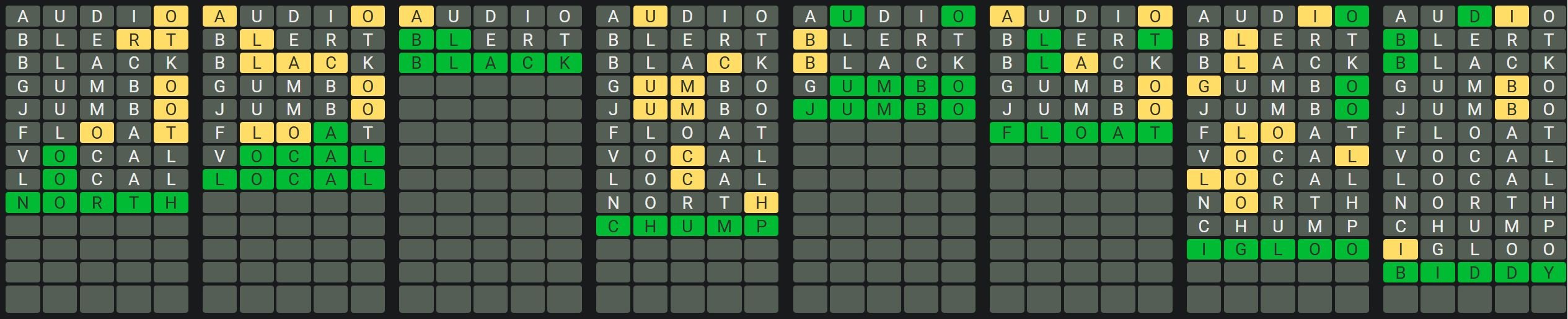The Sequence Mode is similar to the original Octordle game with the following changes.