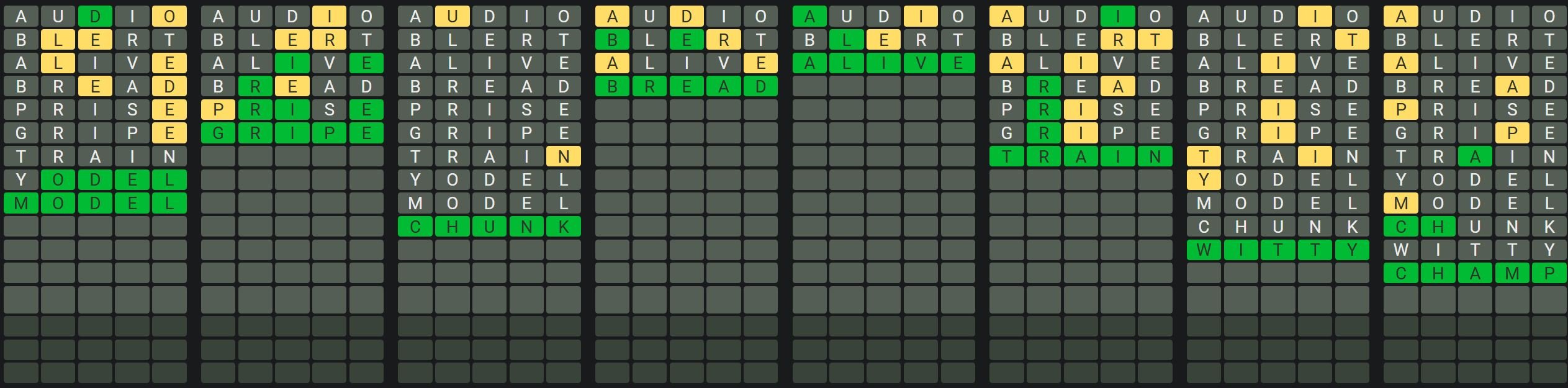 The Sequence Mode is similar to the original Octordle game with the following changes.