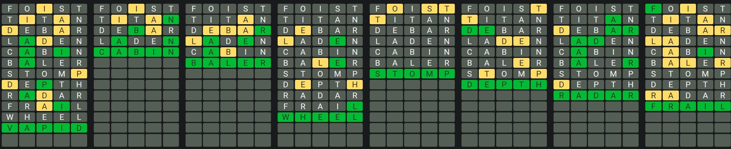 The Sequence Mode is similar to the original Octordle game with the following changes.