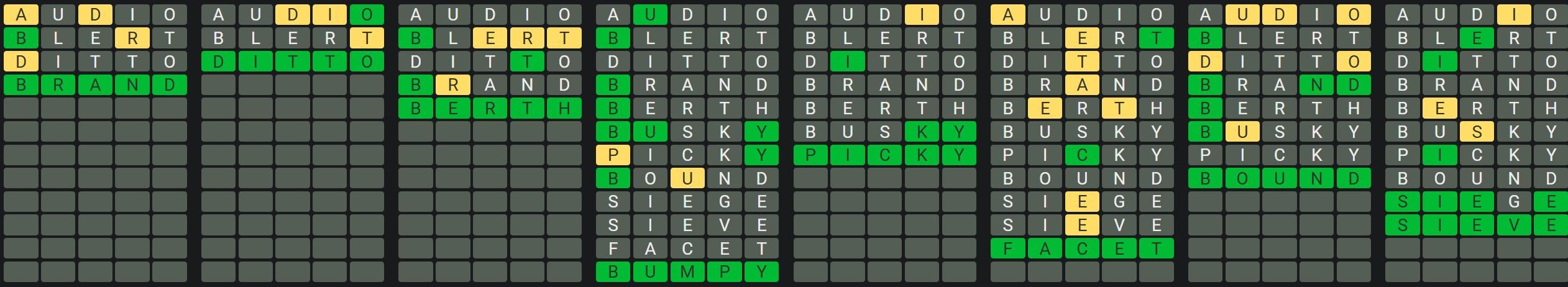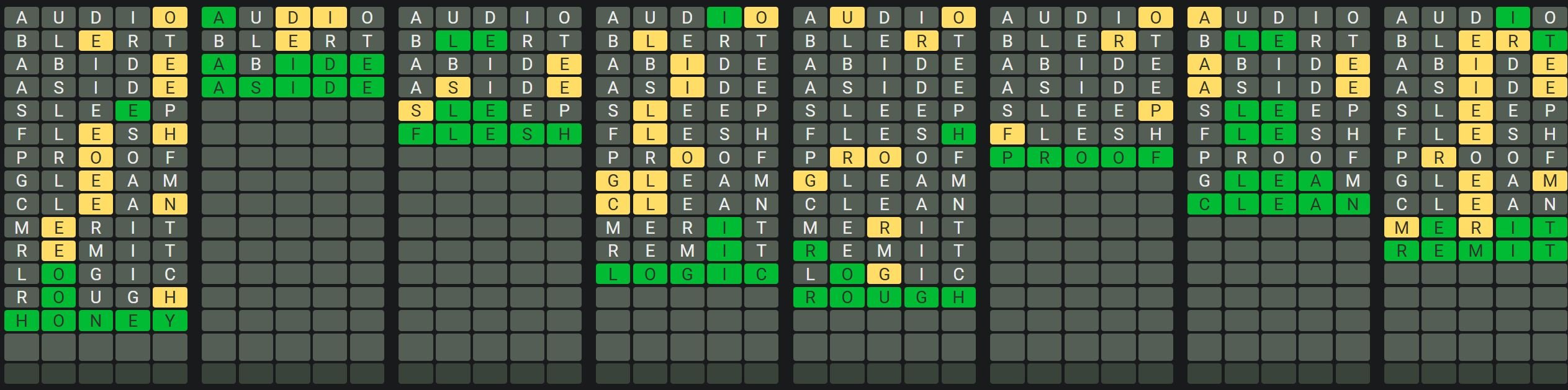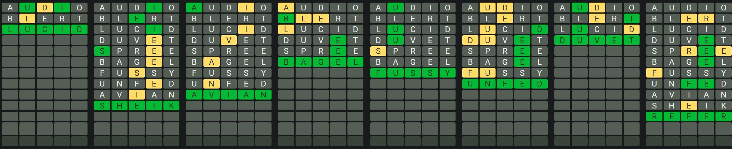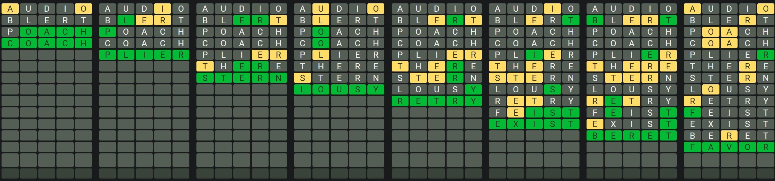The Sequence Mode is similar to the original Octordle game with the following changes.