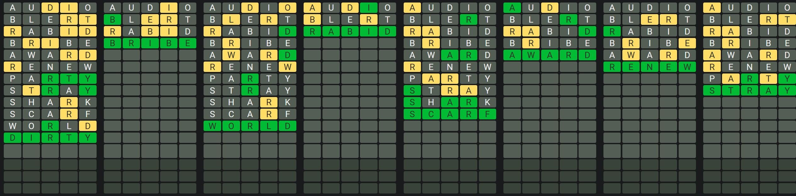 The Sequence Mode is similar to the original Octordle game with the following changes.