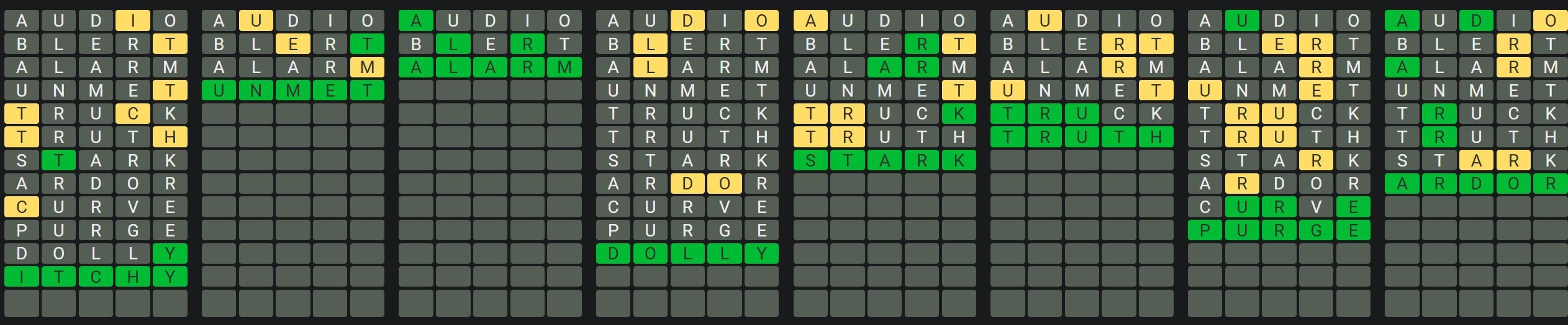 - Only one unsolved word is visible at a time. Once you solve a word, the next board is unlocked.