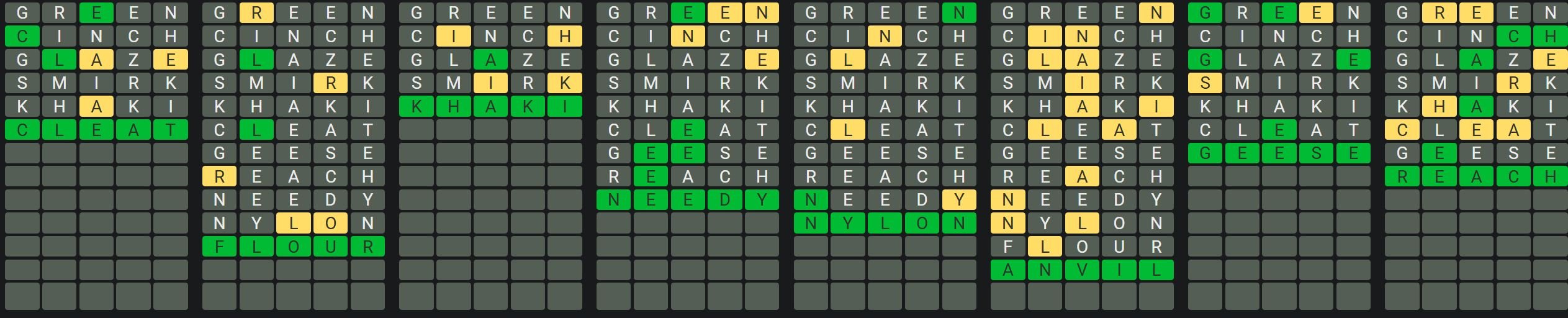 - 15 guesses are allowed instead of the standard 13, due to the added difficulty.