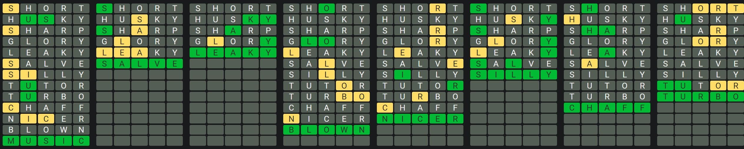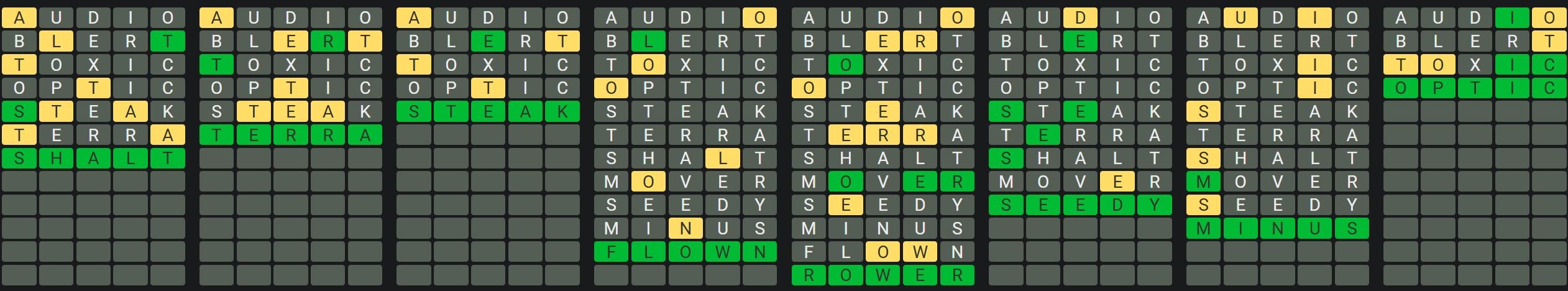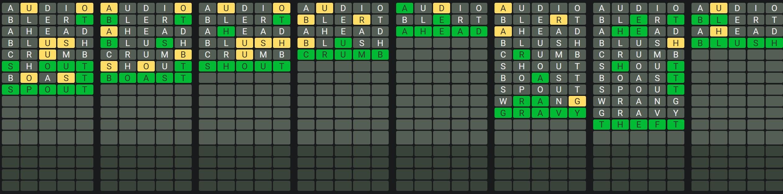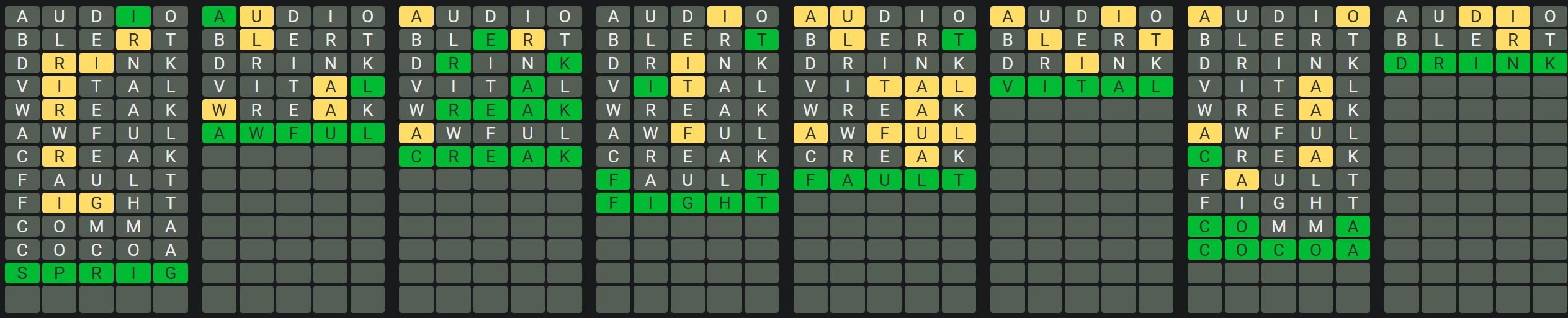 The Sequence Mode is similar to the original Octordle game with the following changes.