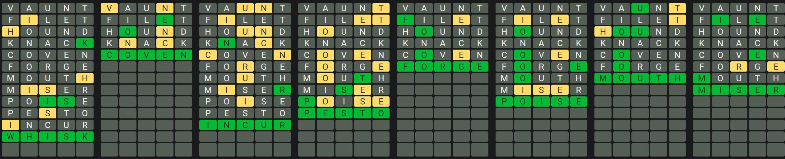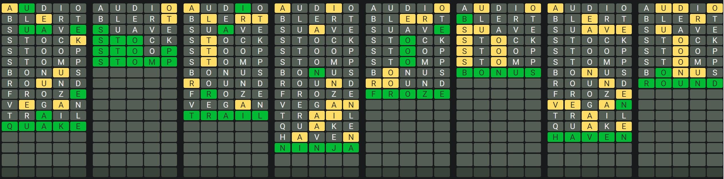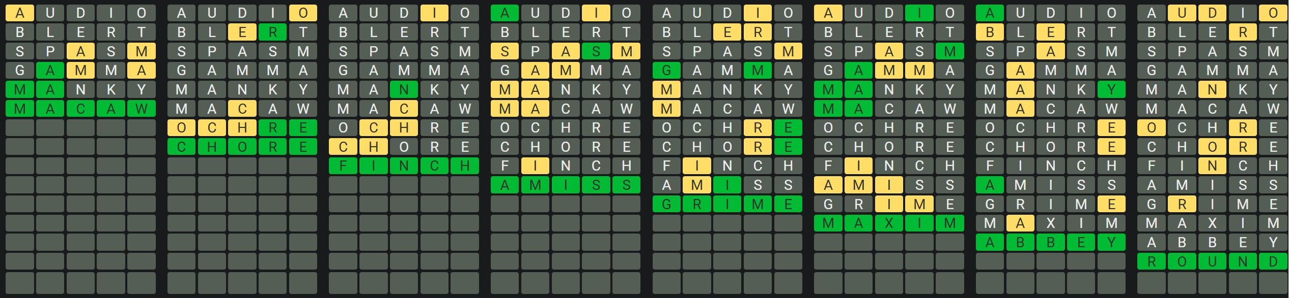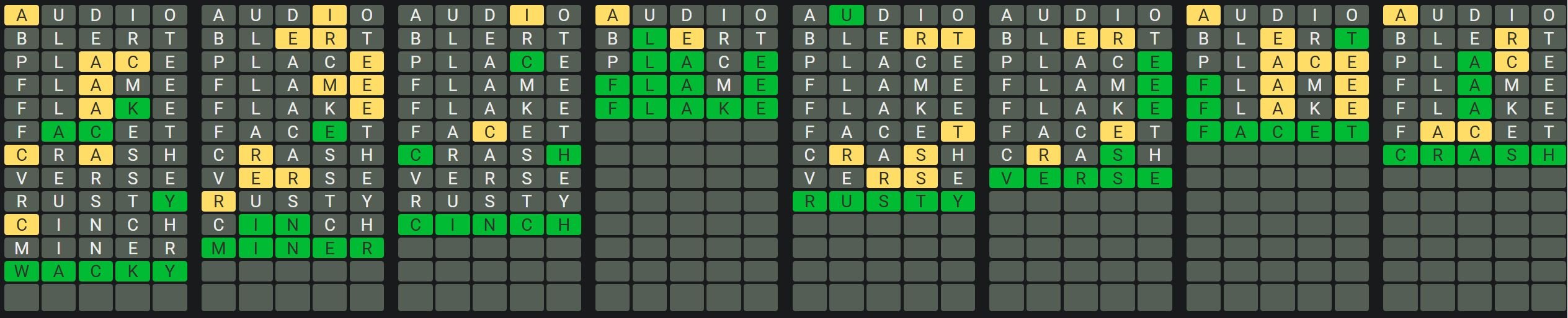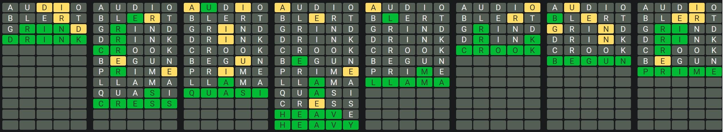 The Sequence Mode is similar to the original Octordle game with the following changes.