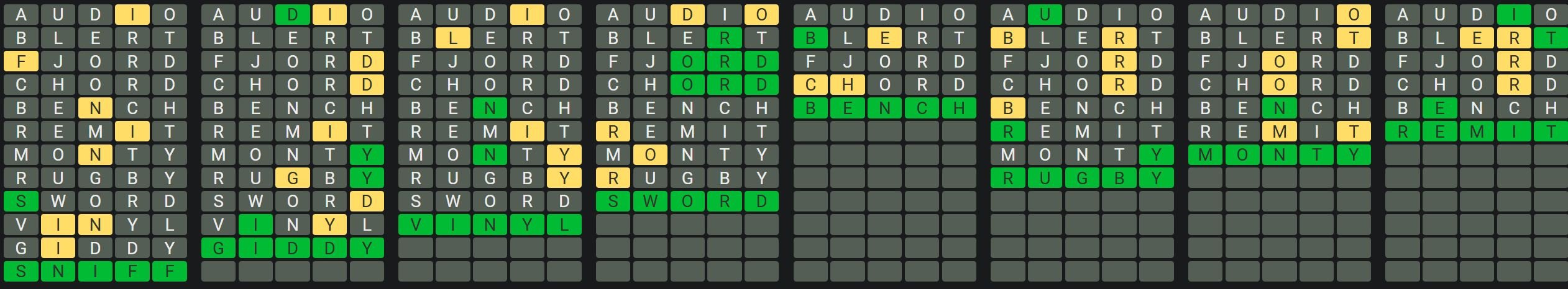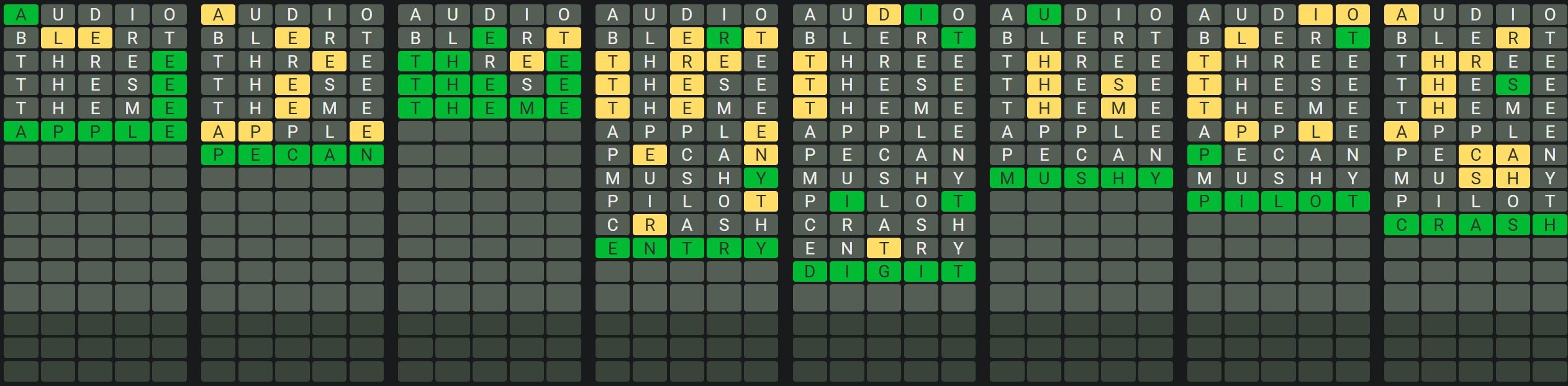 The Sequence Mode is similar to the original Octordle game with the following changes.
