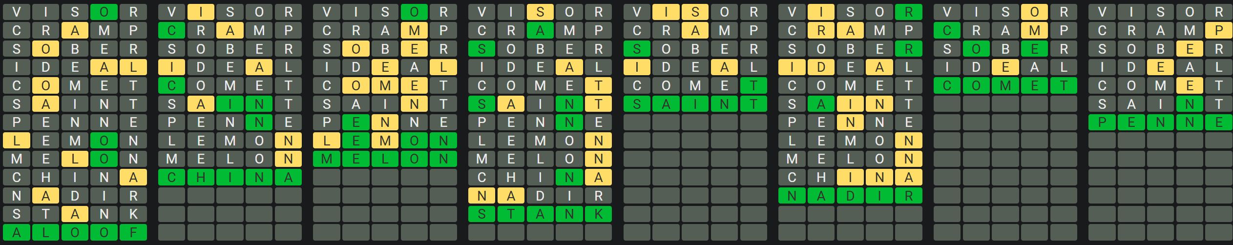 The Sequence Mode is similar to the original Octordle game with the following changes.