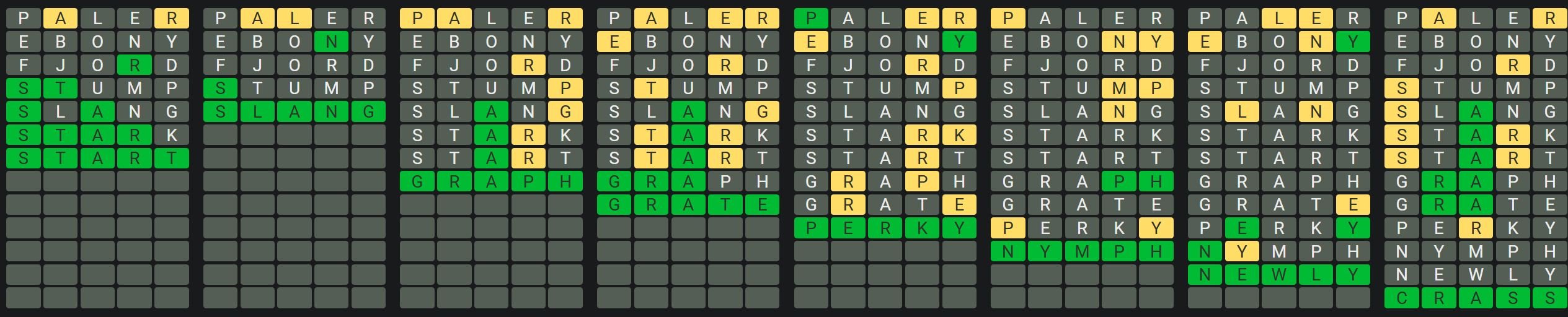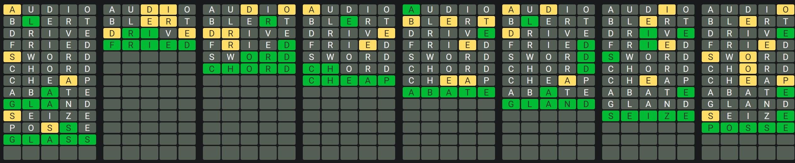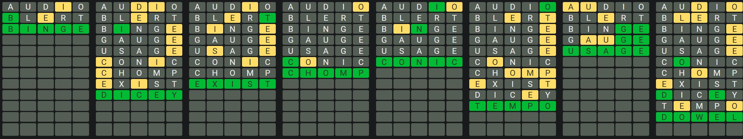 The Sequence Mode is similar to the original Octordle game with the following changes.