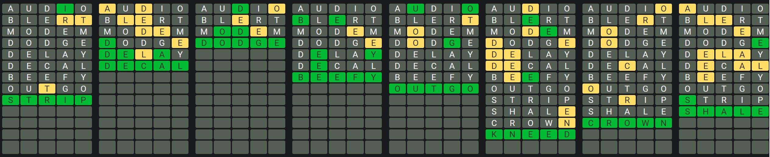 The Sequence Mode is similar to the original Octordle game with the following changes.