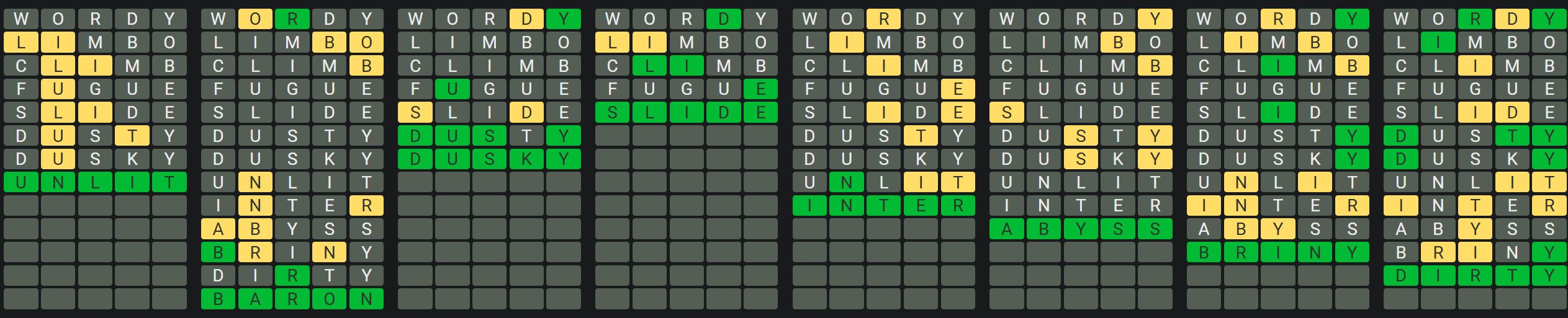 - Only one unsolved word is visible at a time. Once you solve a word, the next board is unlocked.
