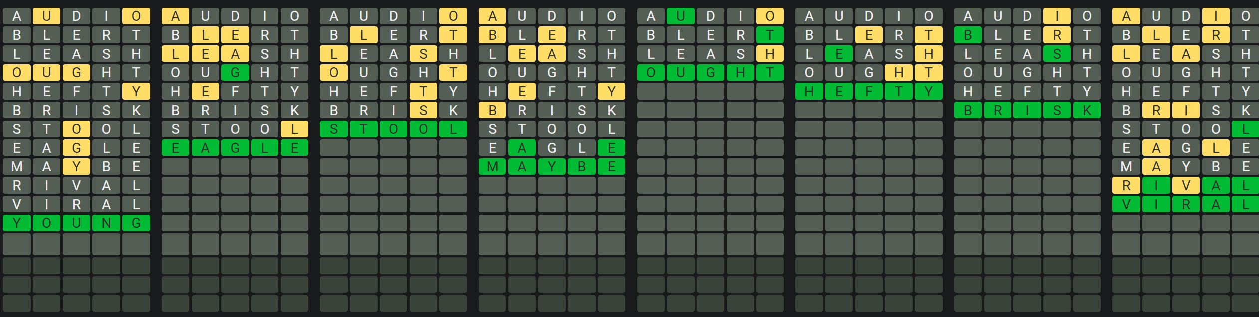 The Sequence Mode is similar to the original Octordle game with the following changes.