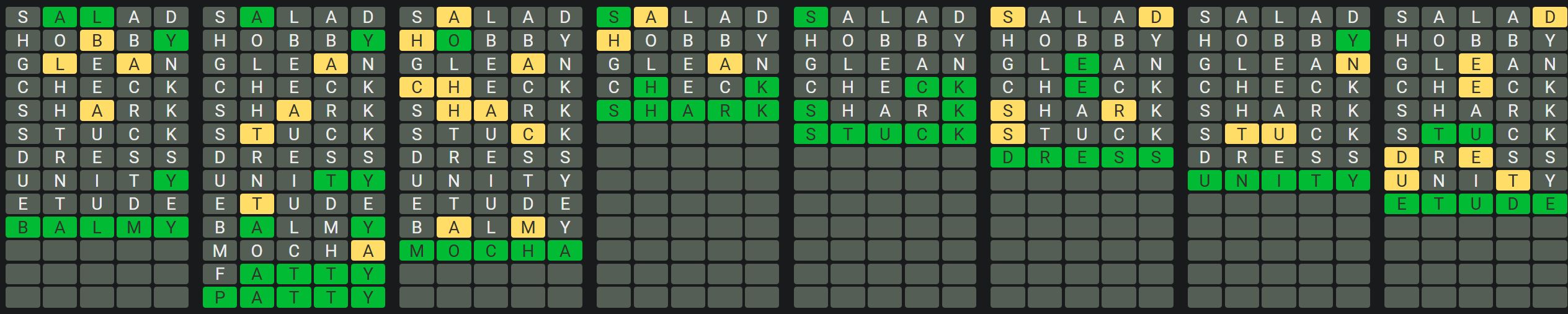 - Only one unsolved word is visible at a time. Once you solve a word, the next board is unlocked.