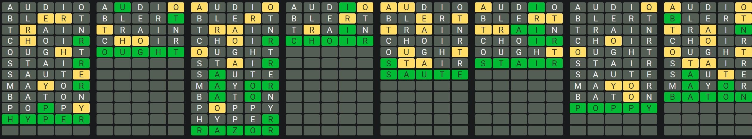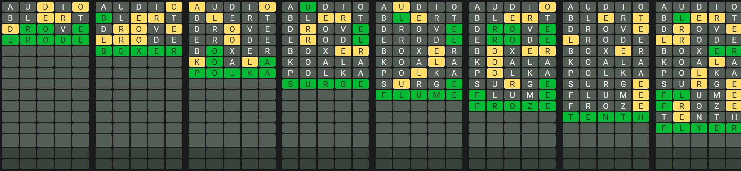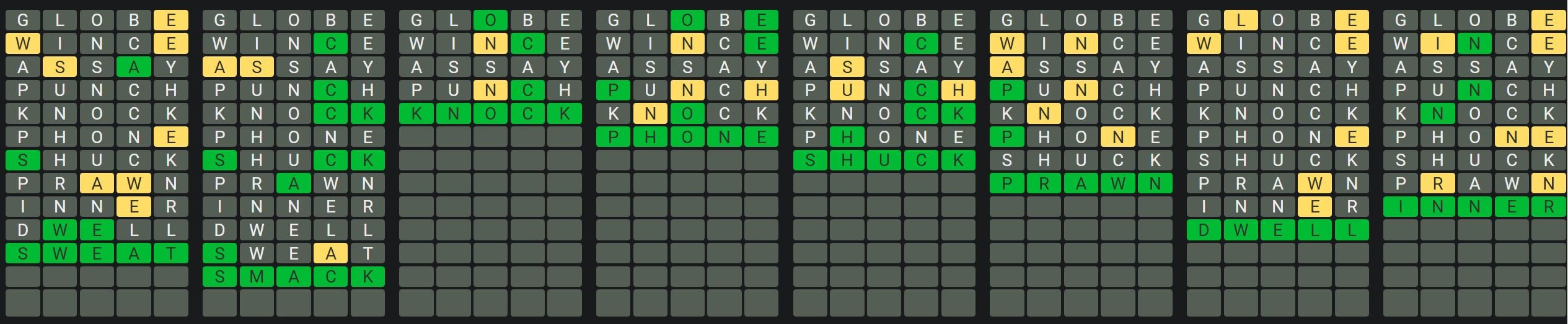 The Sequence Mode is similar to the original Octordle game with the following changes.