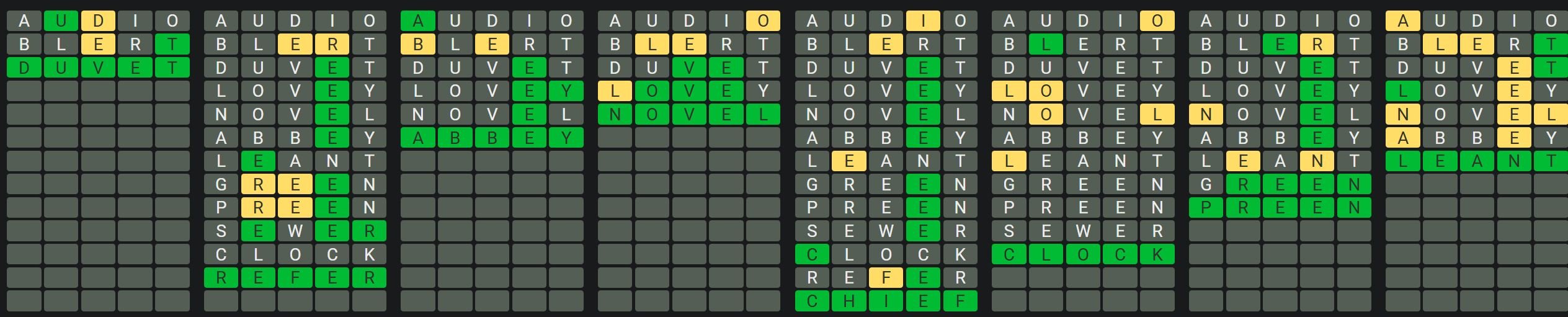 The Sequence Mode is similar to the original Octordle game with the following changes.