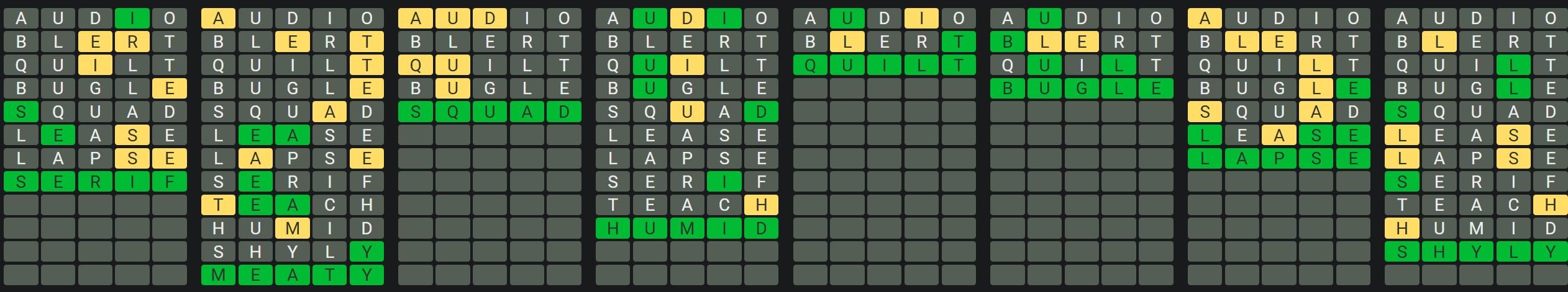 The Sequence Mode is similar to the original Octordle game with the following changes.