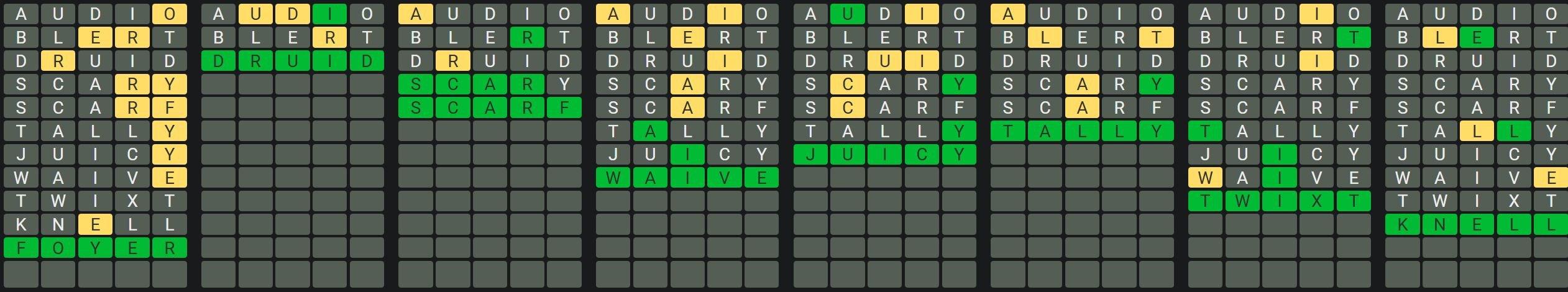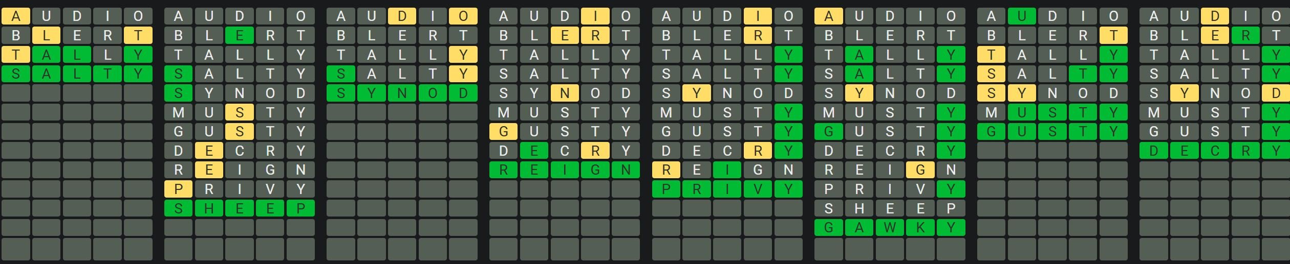 The Sequence Mode is similar to the original Octordle game with the following changes.