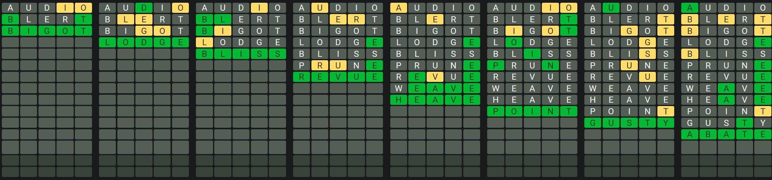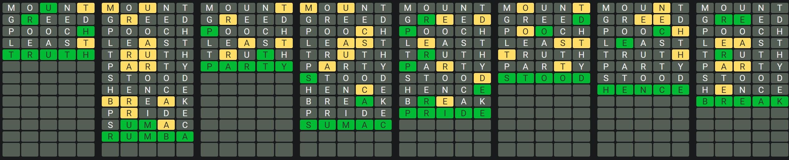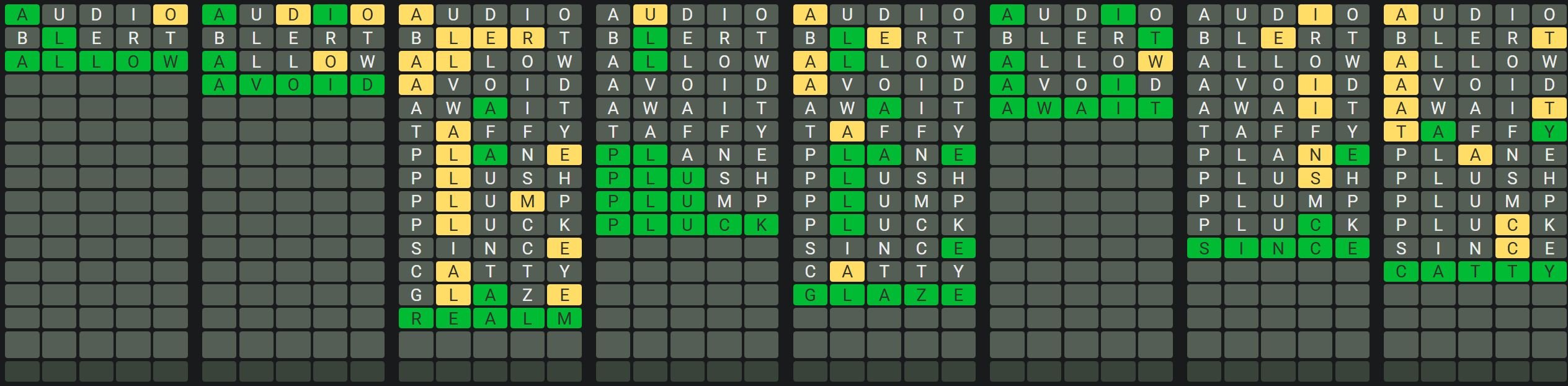 The Sequence Mode is similar to the original Octordle game with the following changes.
