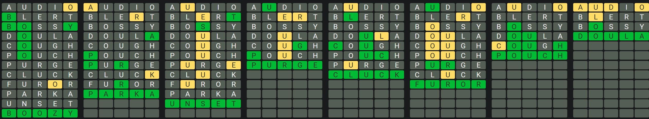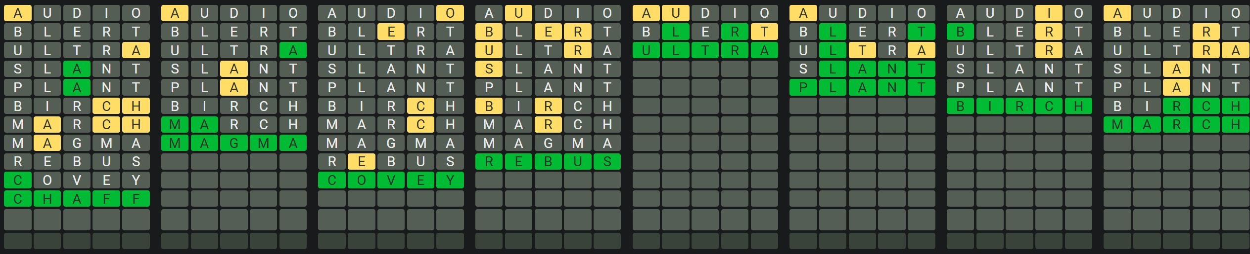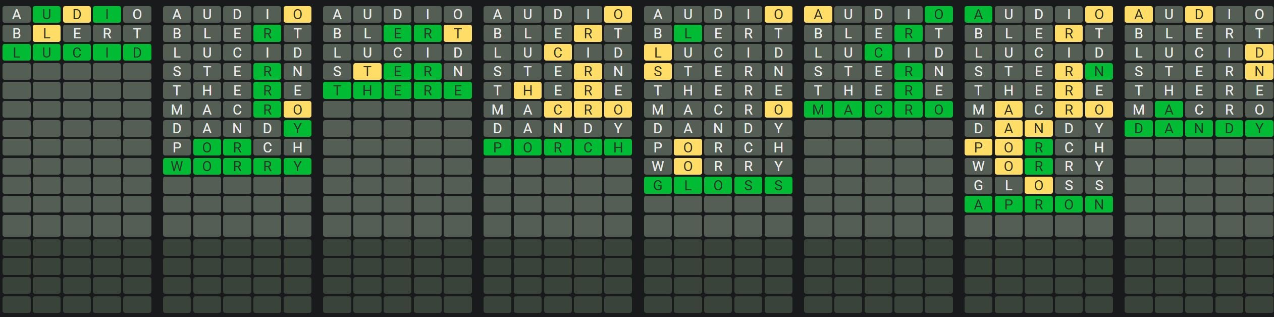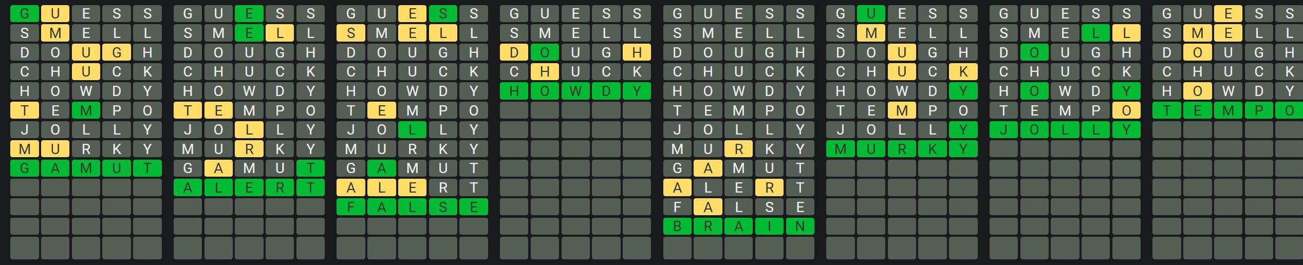 The Sequence Mode is similar to the original Octordle game with the following changes.
