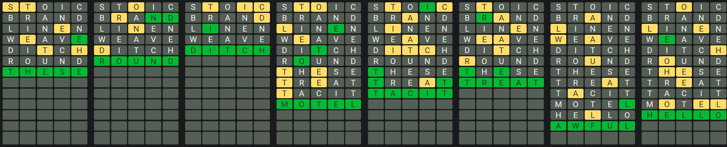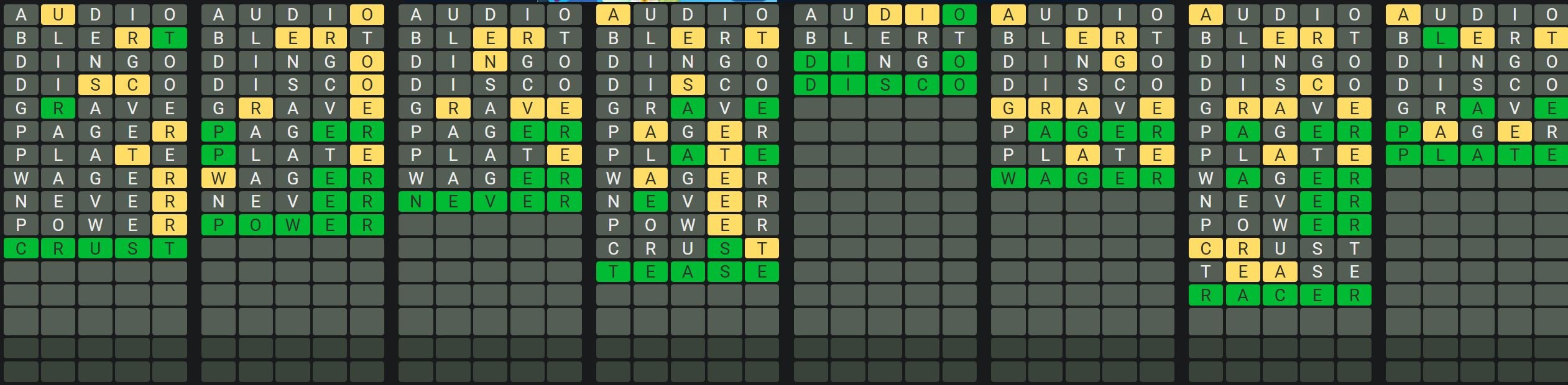 The Sequence Mode is similar to the original Octordle game with the following changes.