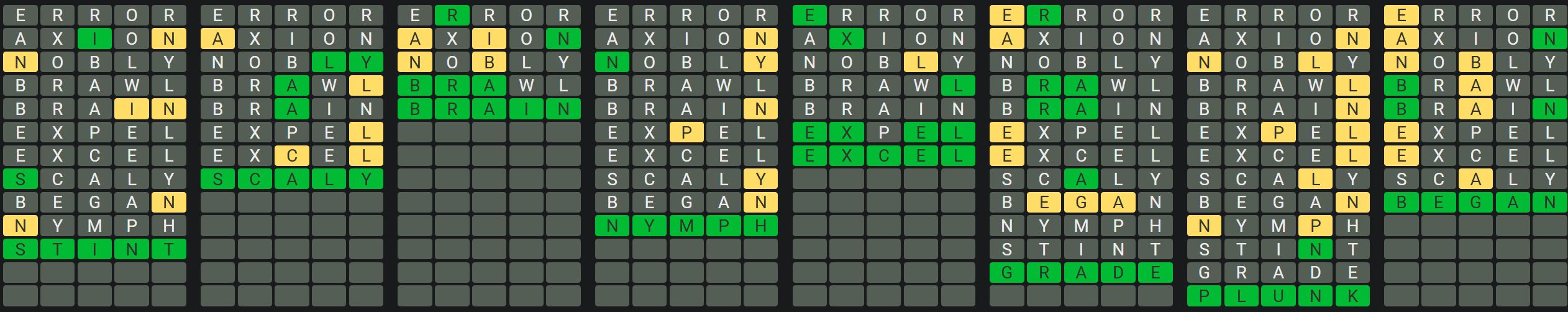 The Sequence Mode is similar to the original Octordle game with the following changes.
