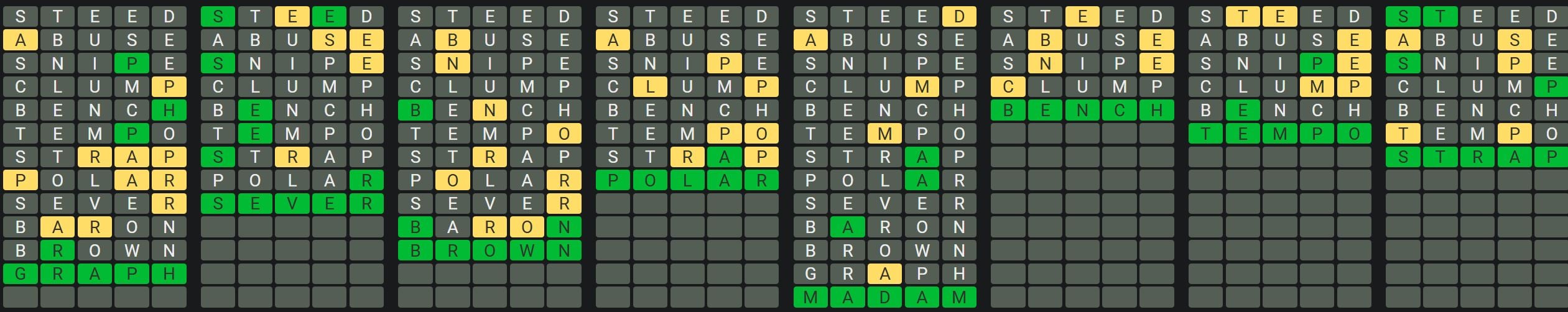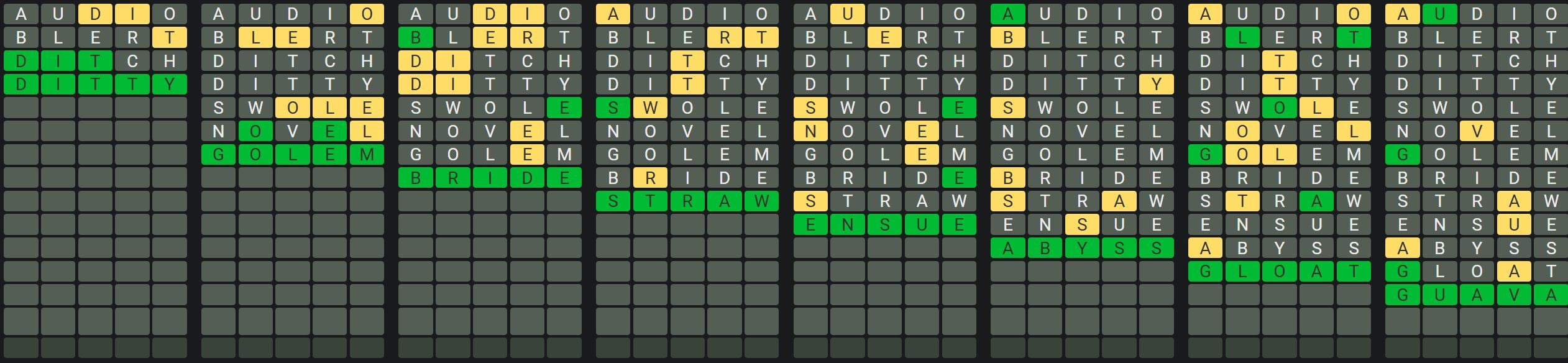 The Sequence Mode is similar to the original Octordle game with the following changes.