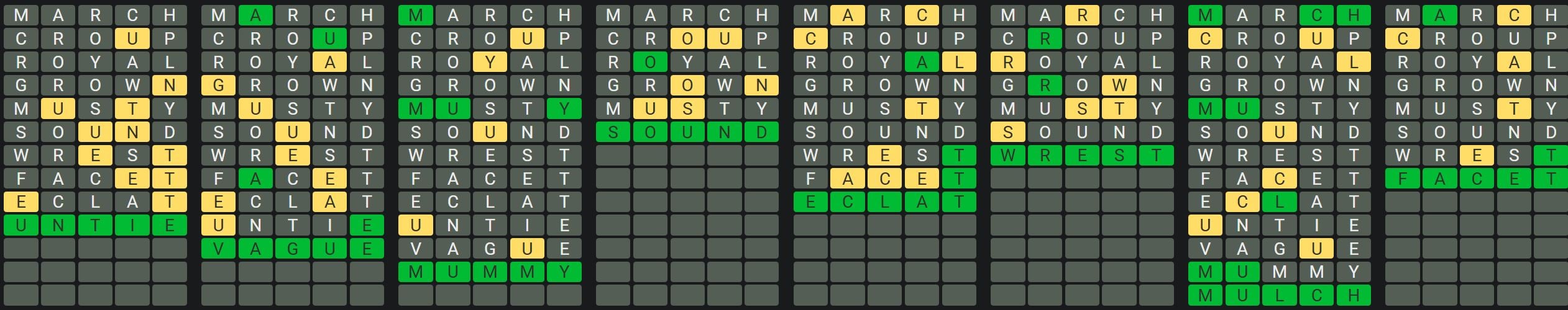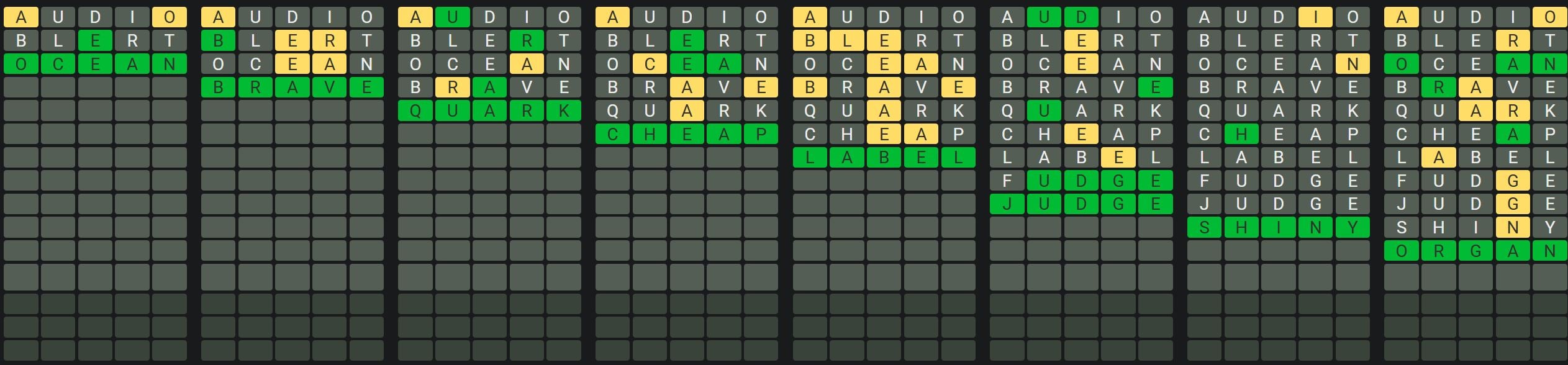The Sequence Mode is similar to the original Octordle game with the following changes.