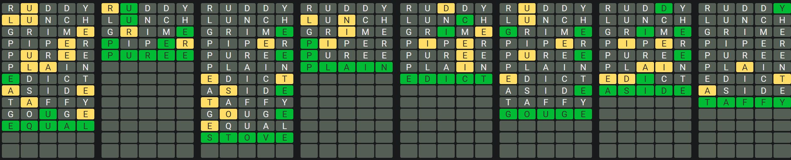 The Sequence Mode is similar to the original Octordle game with the following changes.