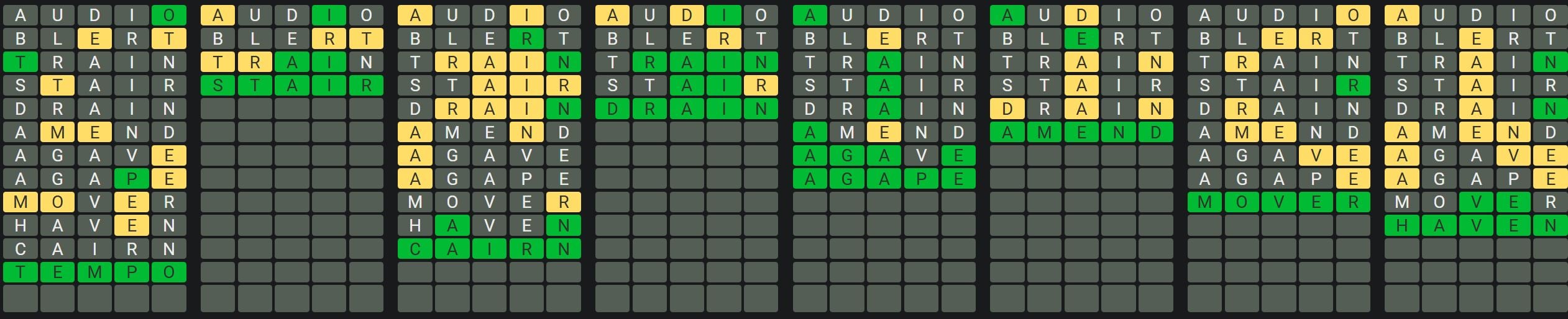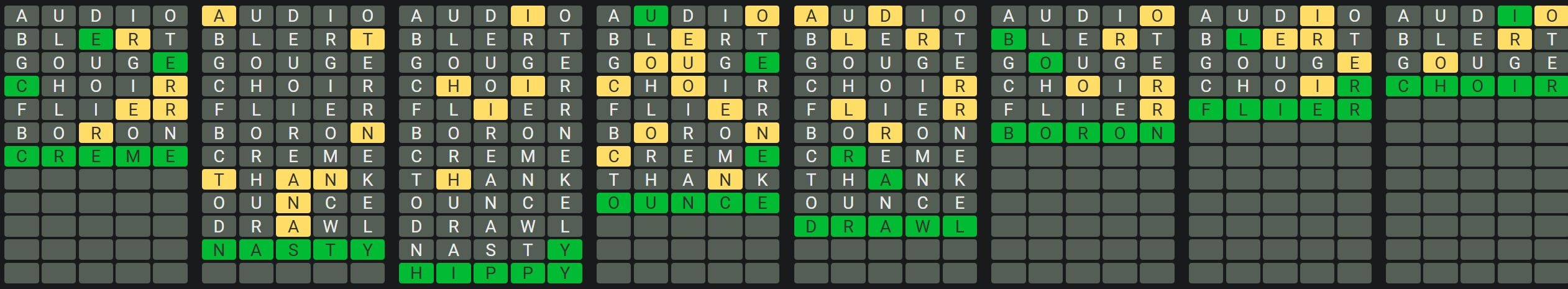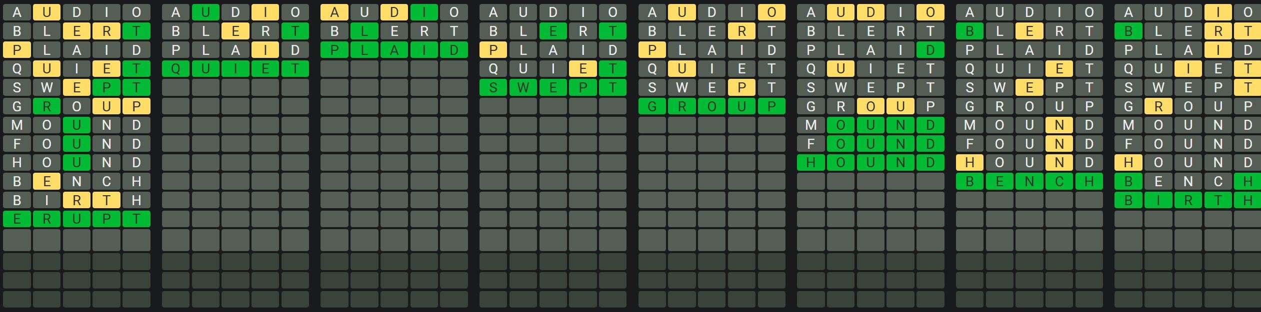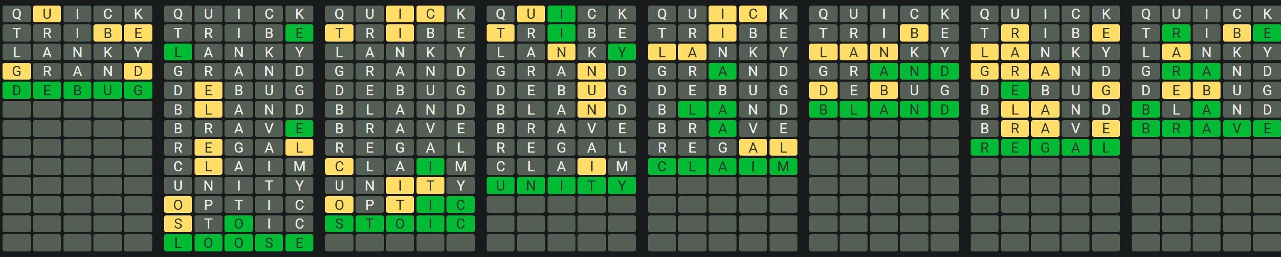 The Sequence Mode is similar to the original Octordle game with the following changes.
