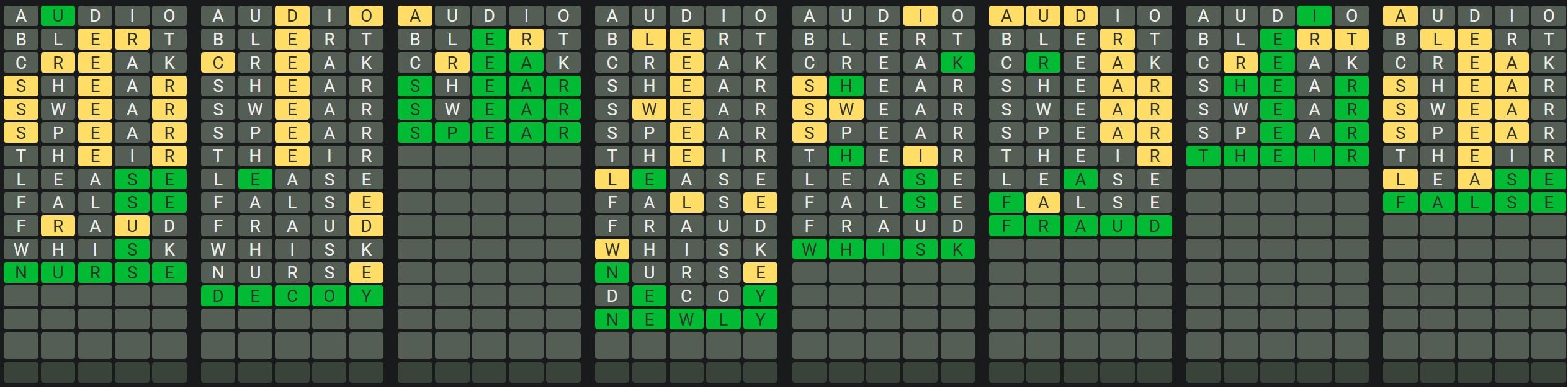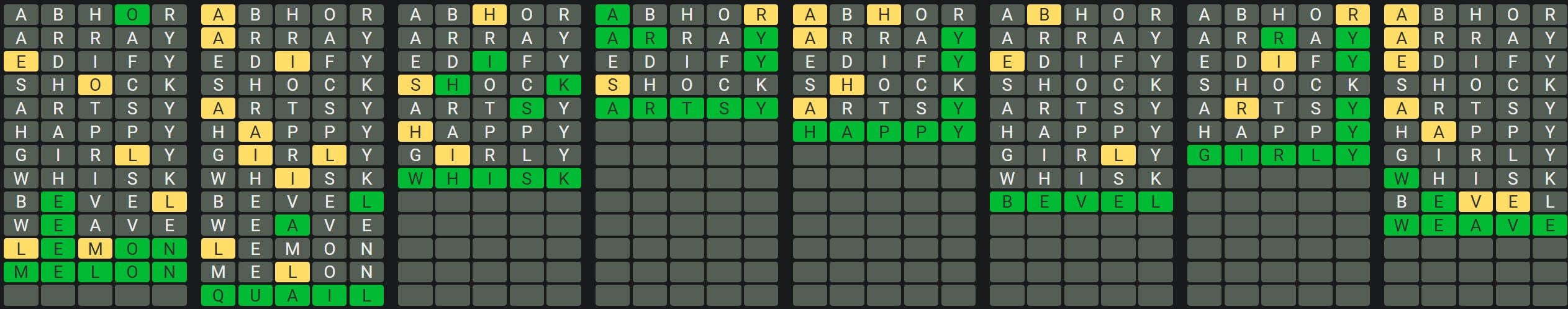 The Sequence Mode is similar to the original Octordle game with the following changes.