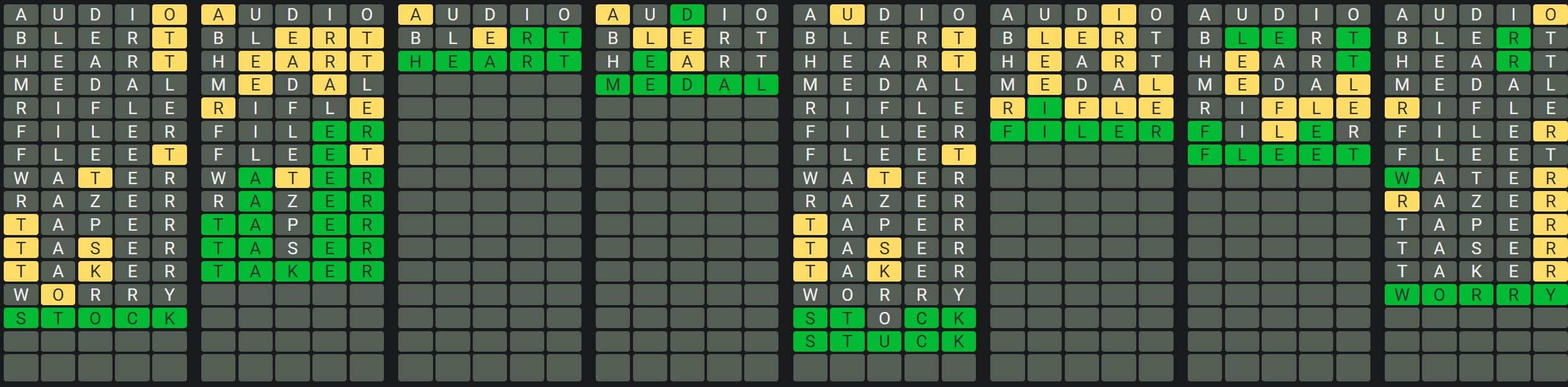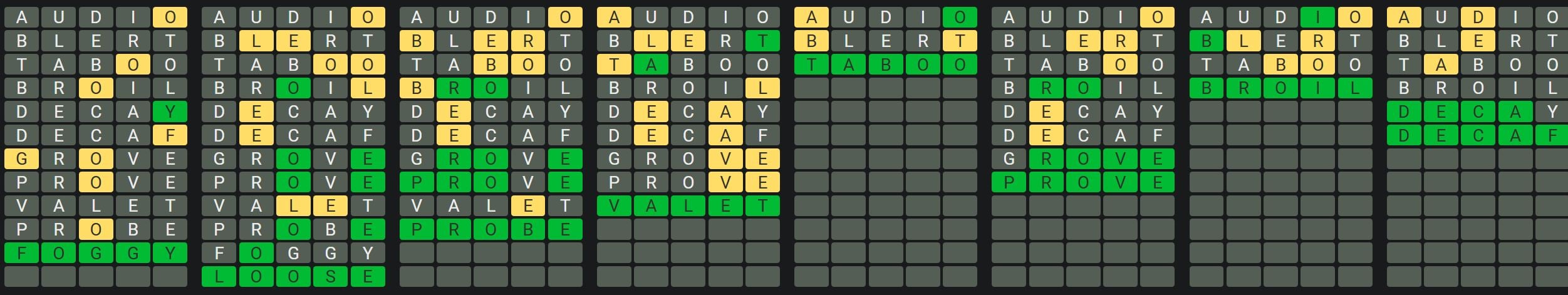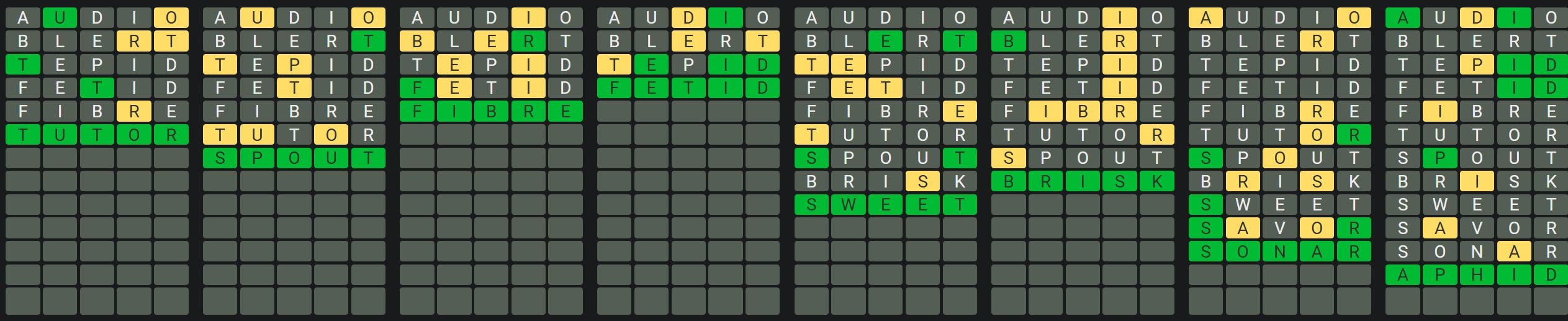 The Sequence Mode is similar to the original Octordle game with the following changes.