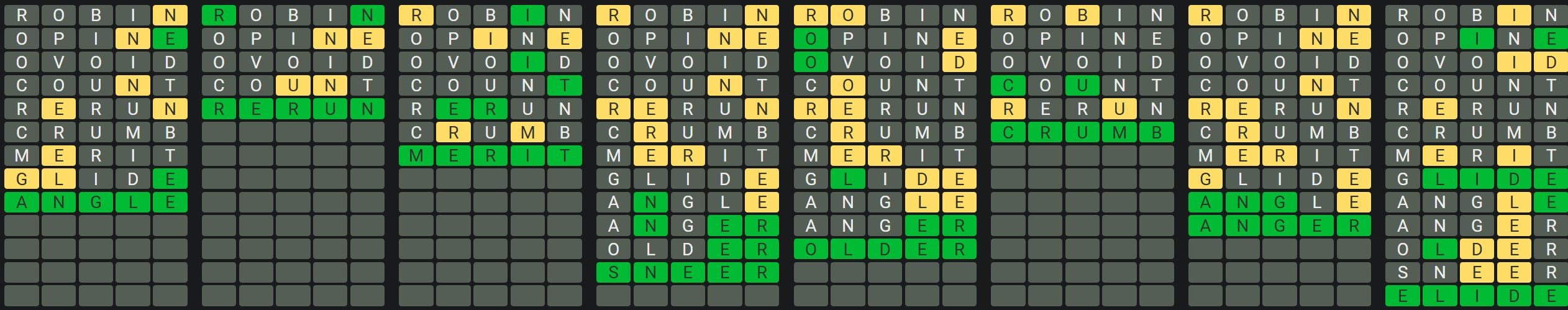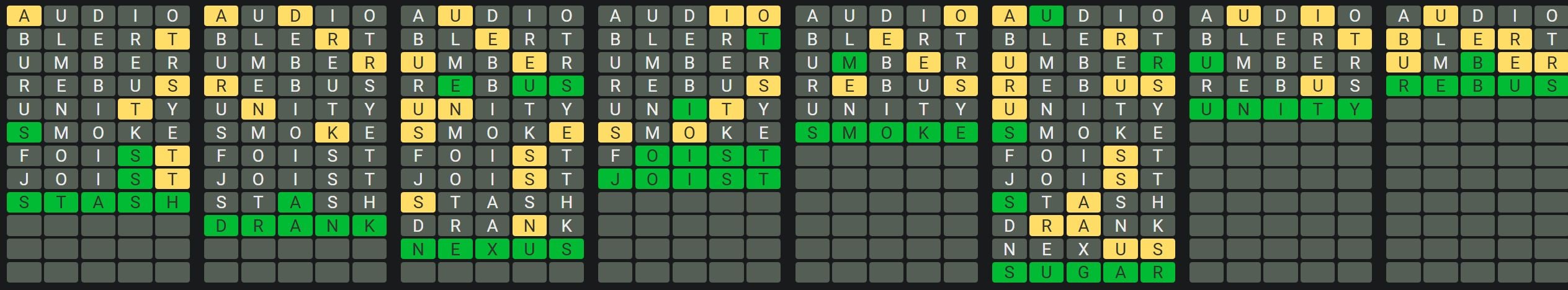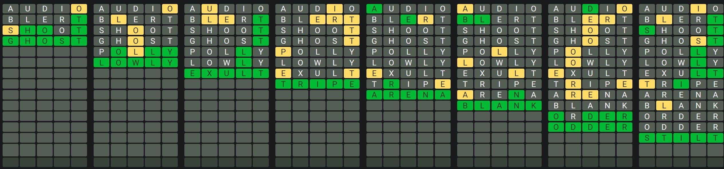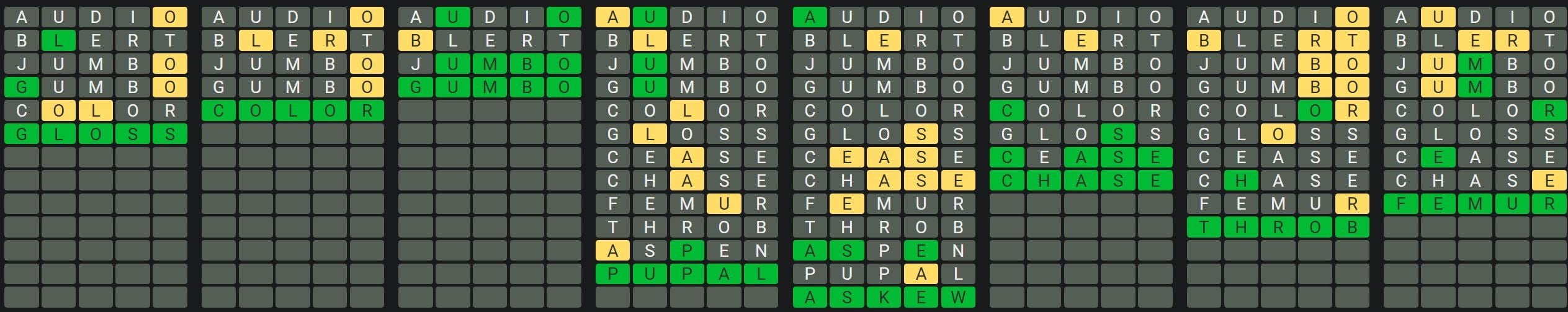 The Sequence Mode is similar to the original Octordle game with the following changes.