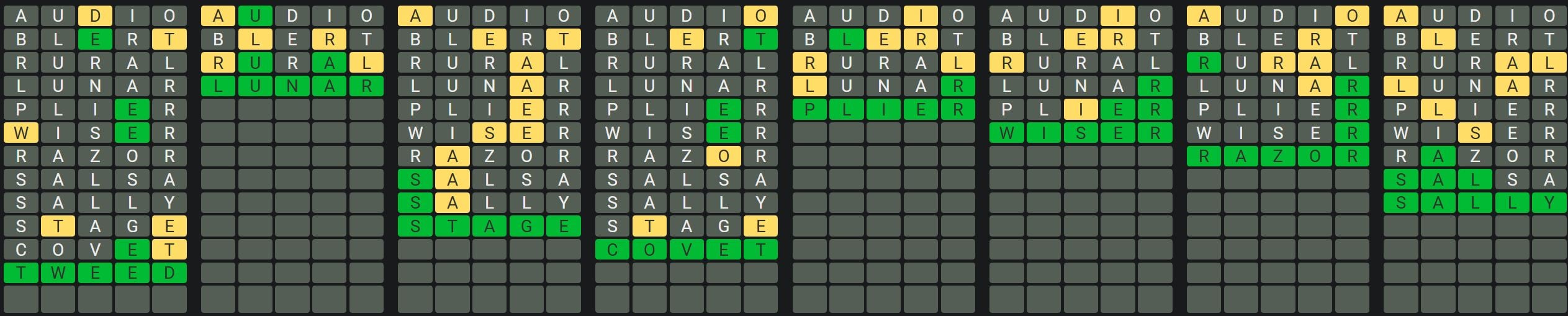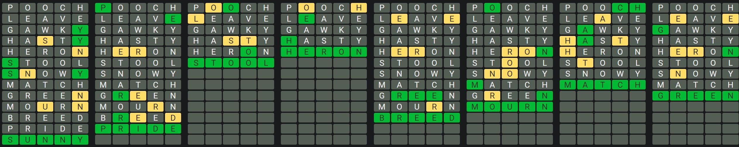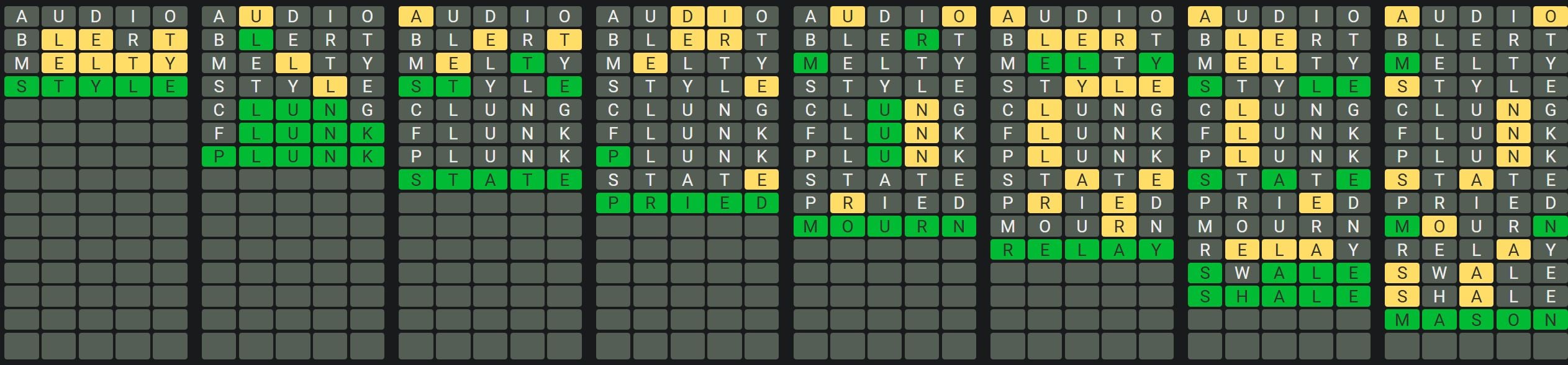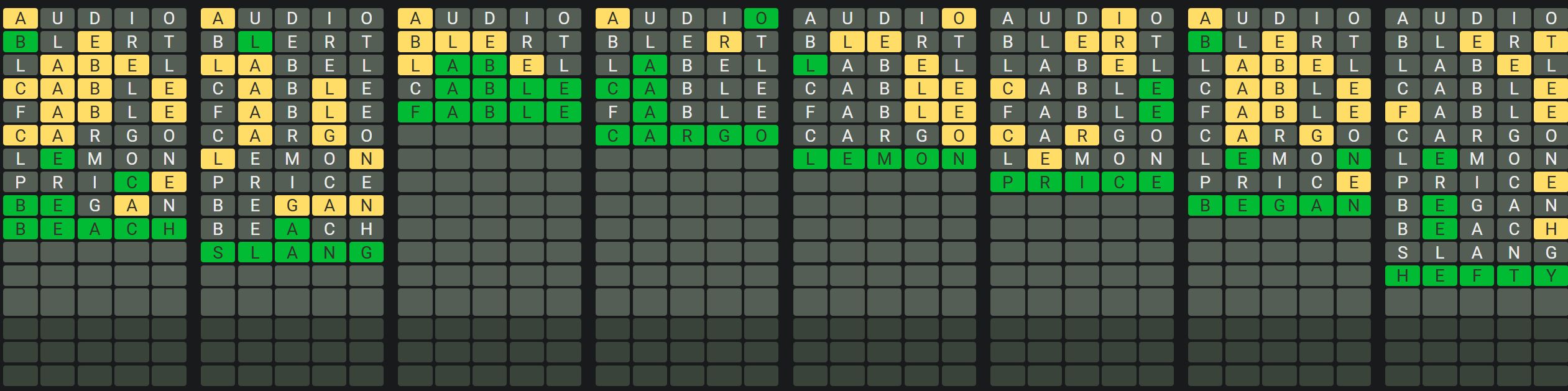 The Sequence Mode is similar to the original Octordle game with the following changes.