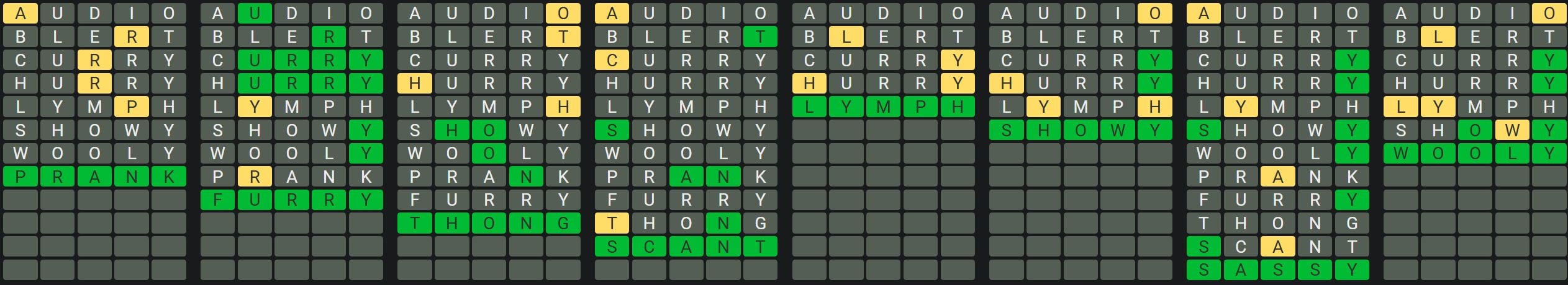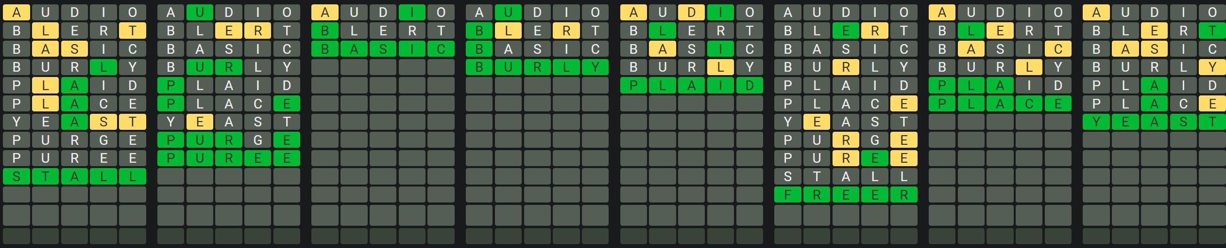 The Sequence Mode is similar to the original Octordle game with the following changes.