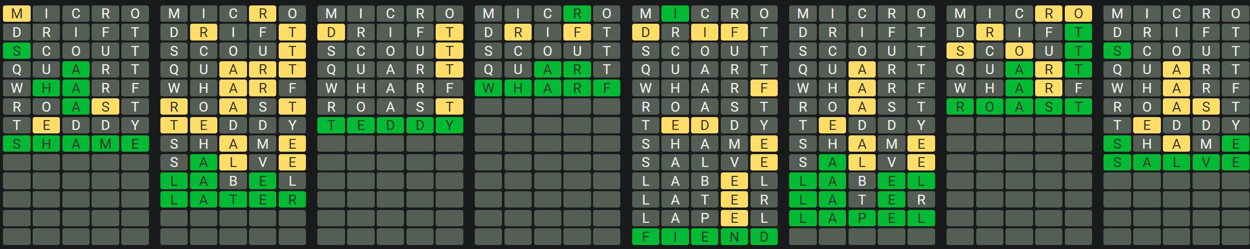 - Only one unsolved word is visible at a time. Once you solve a word, the next board is unlocked.