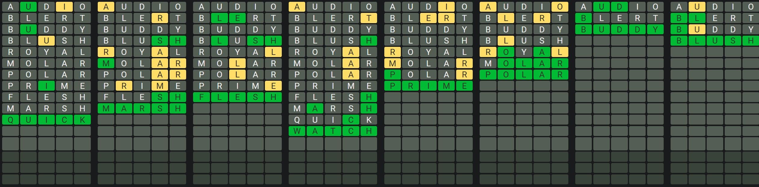 This will help you realize which letters appear in each word so you can solve the words quickly and efficiently. There may be some words that have repeated letters, so make sure you keep that in mind when guessing the words.