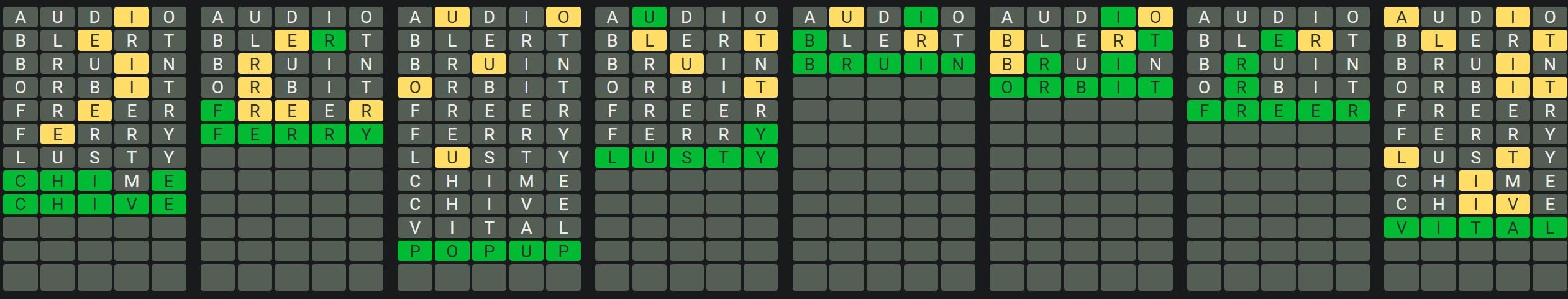 The Sequence Mode is similar to the original Octordle game with the following changes.