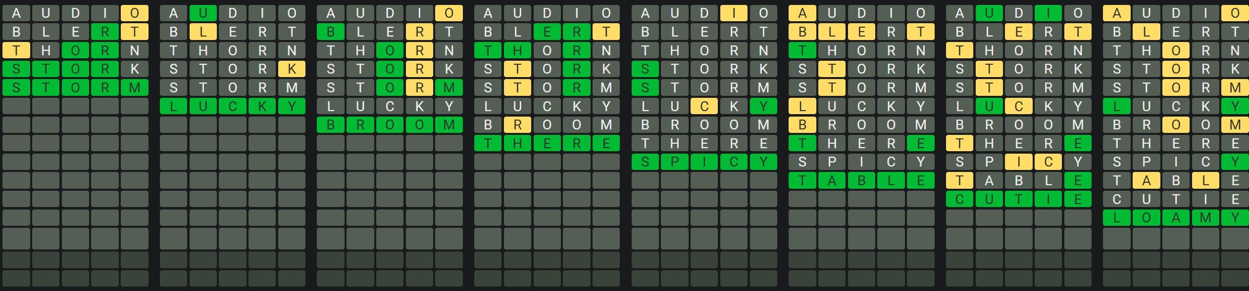 Octordle is a difficult game in which players must guess eight five-letter words at the same time while only having thirteen guesses! The game functions similarly to Wordle in that there are no clues to assist you in guessing the words, but once you have guessed a word, the tiles will change colour.