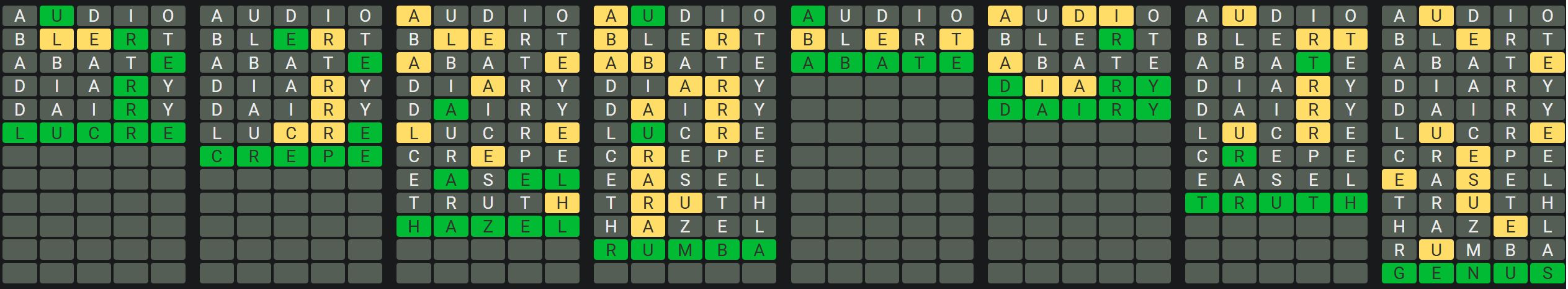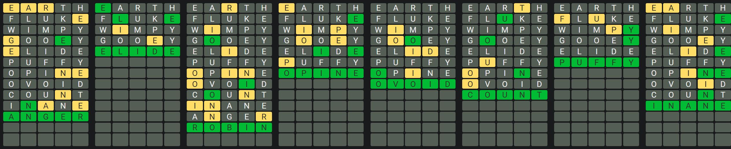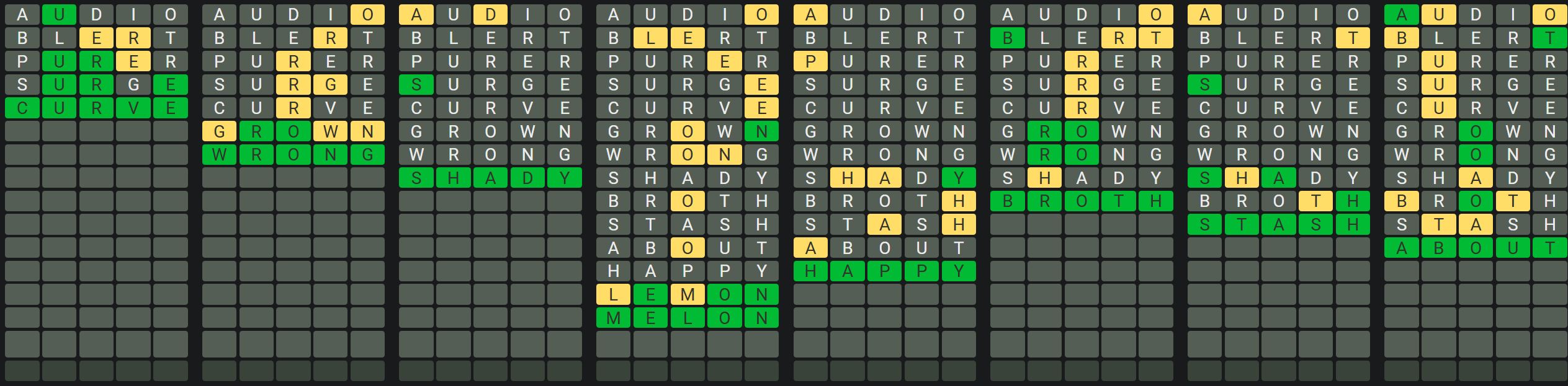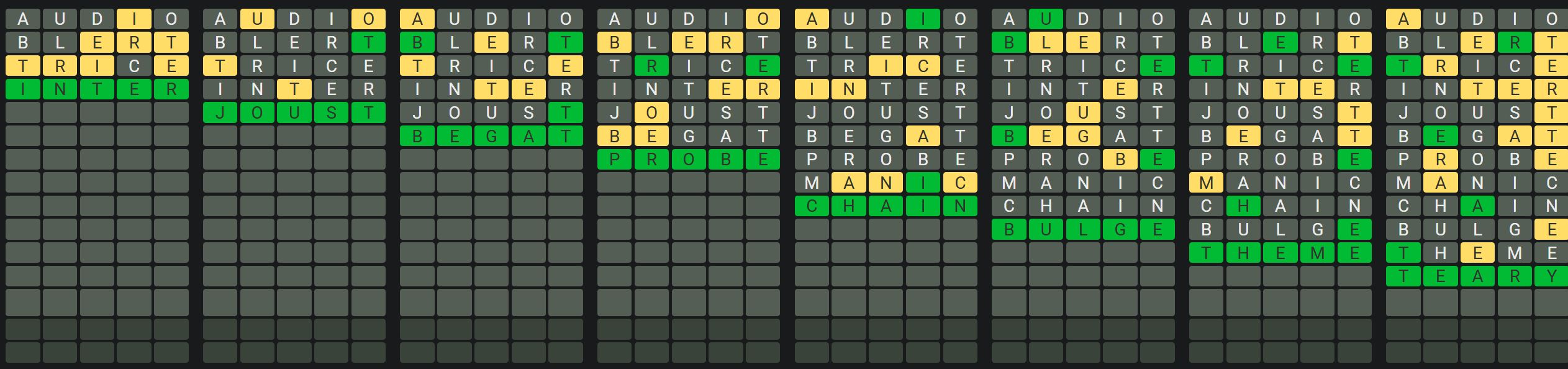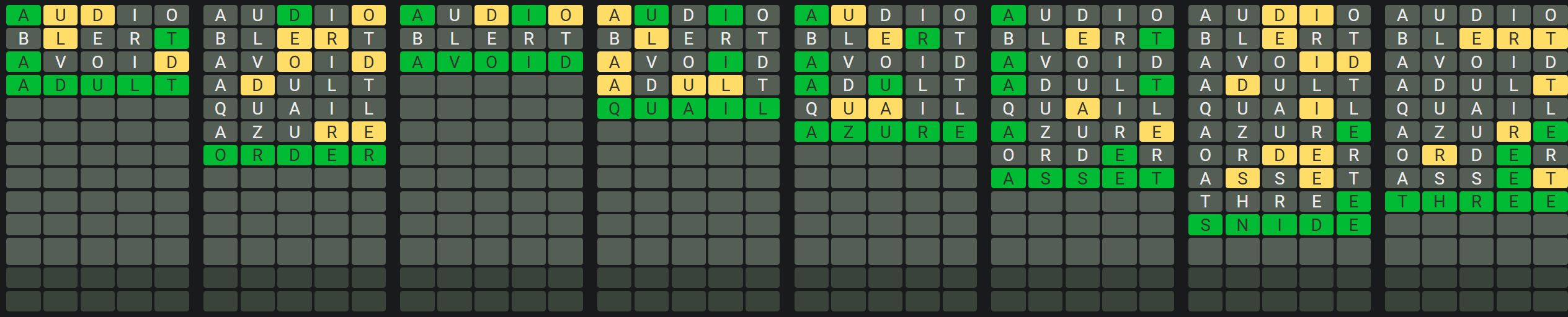 The Sequence Mode is similar to the original Octordle game with the following changes.